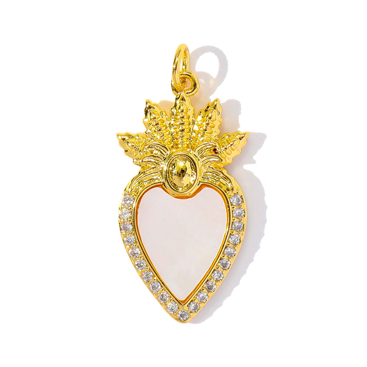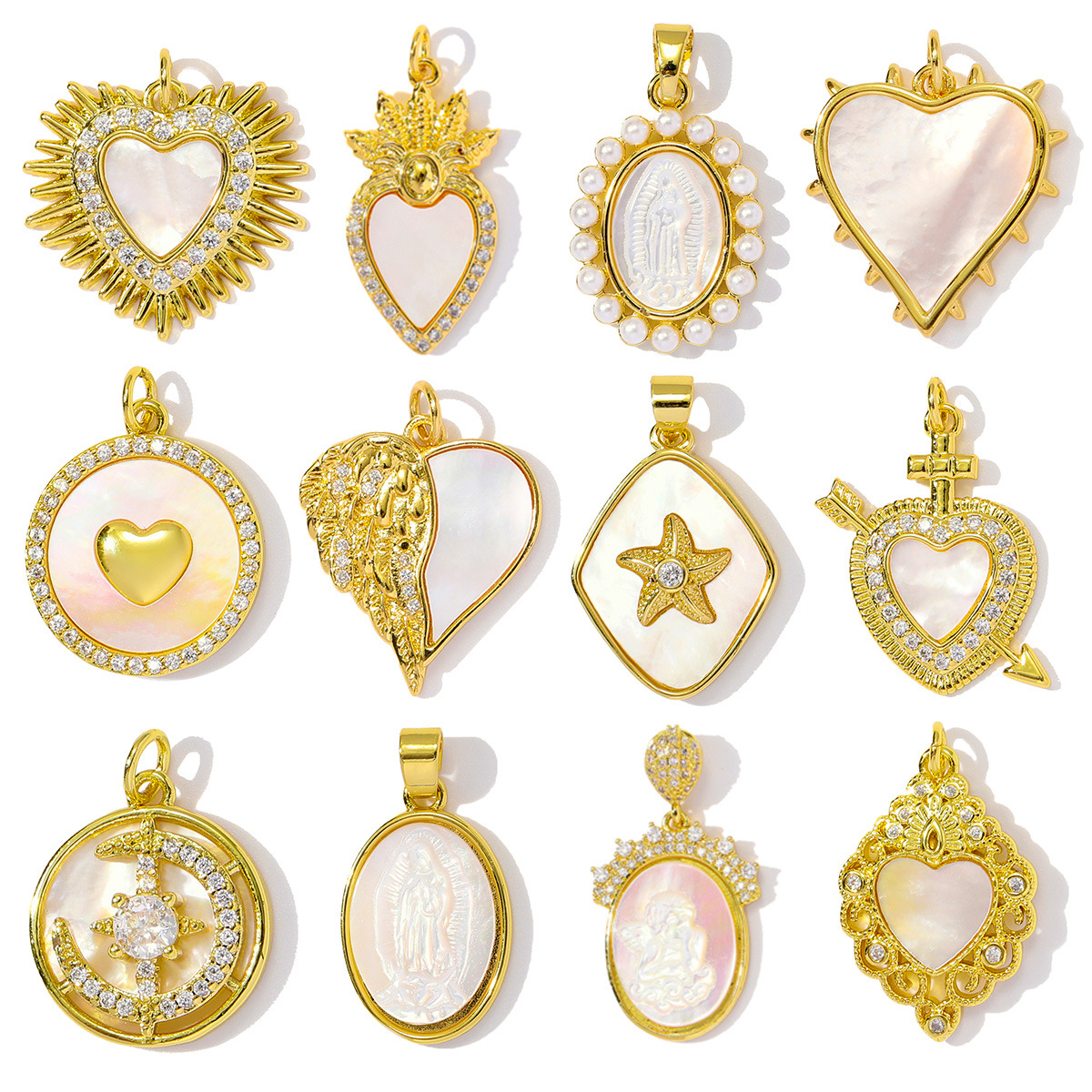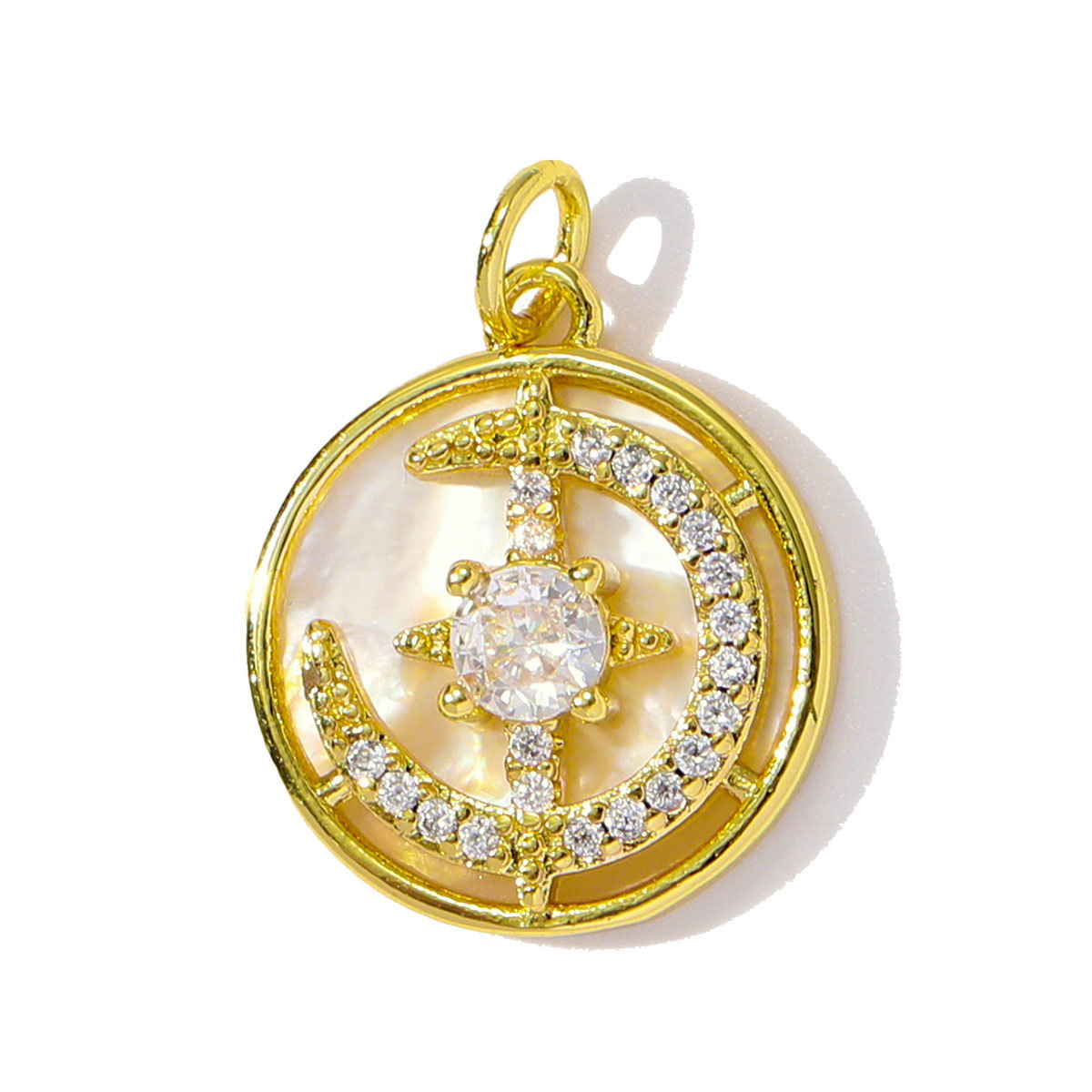 Cilindrata Zircone micro pavimenta il pendente di ottone, with bianco conchiglia, placcato, DIY & Micro spianare cubic zirconia, nessuno, assenza di nichel,piombo&cadmio, 3PC/borsa, Venduto da borsa