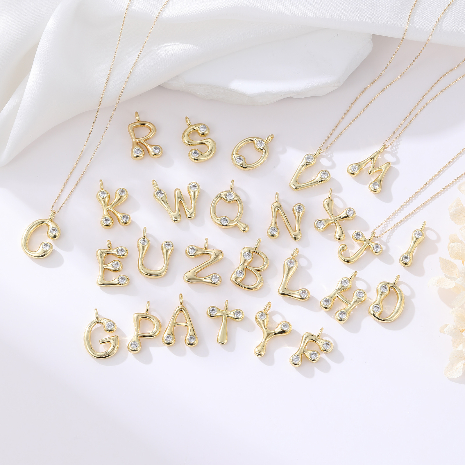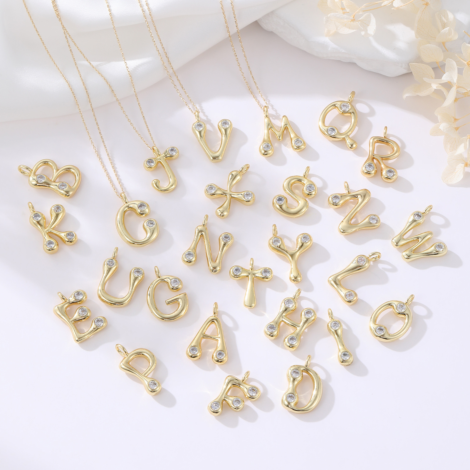 Cilindrata Zircone micro pavimenta il pendente di ottone, Rame, Lettera alfabeto, placcato color oro, DIY & stili diversi per la scelta & Micro spianare cubic zirconia, Venduto da PC