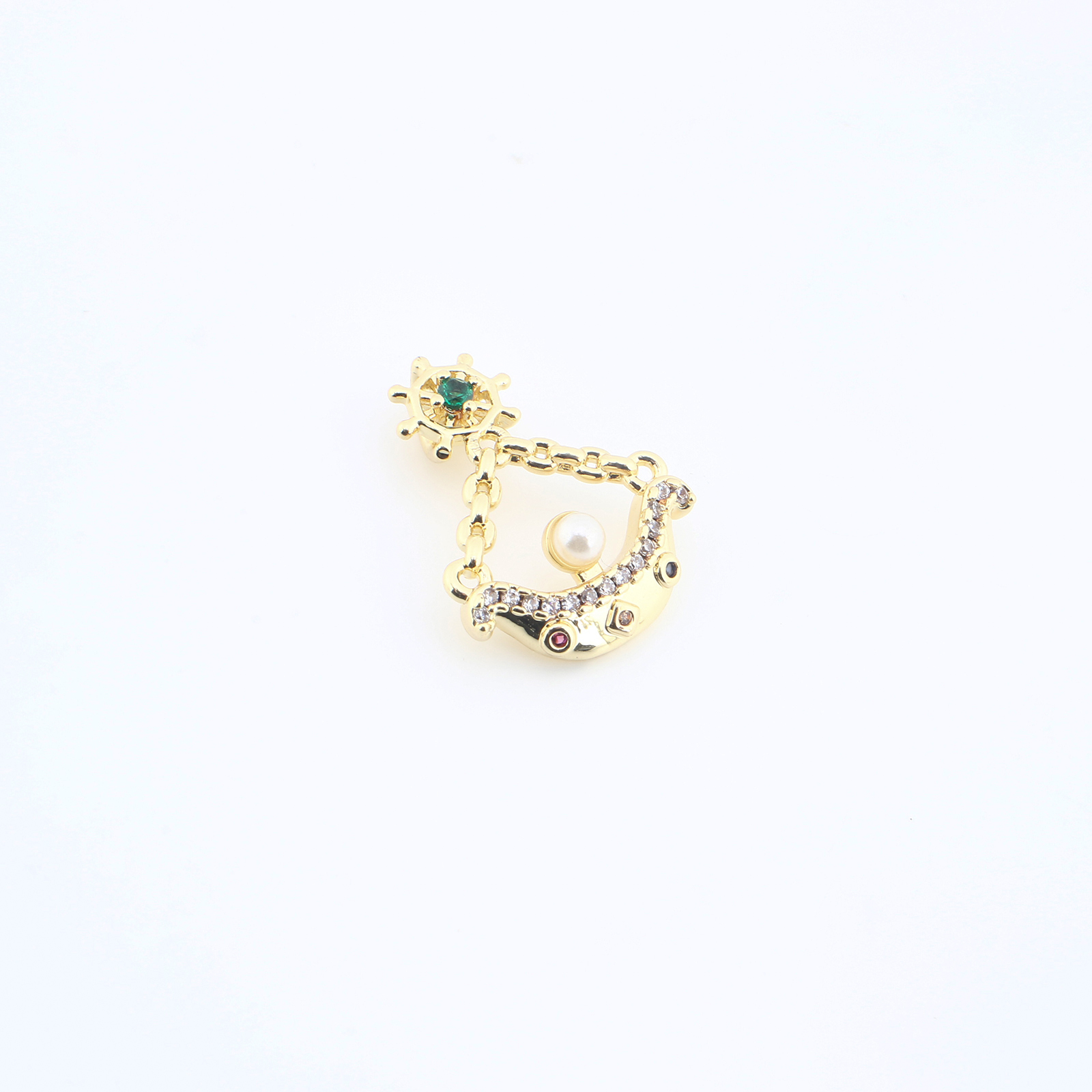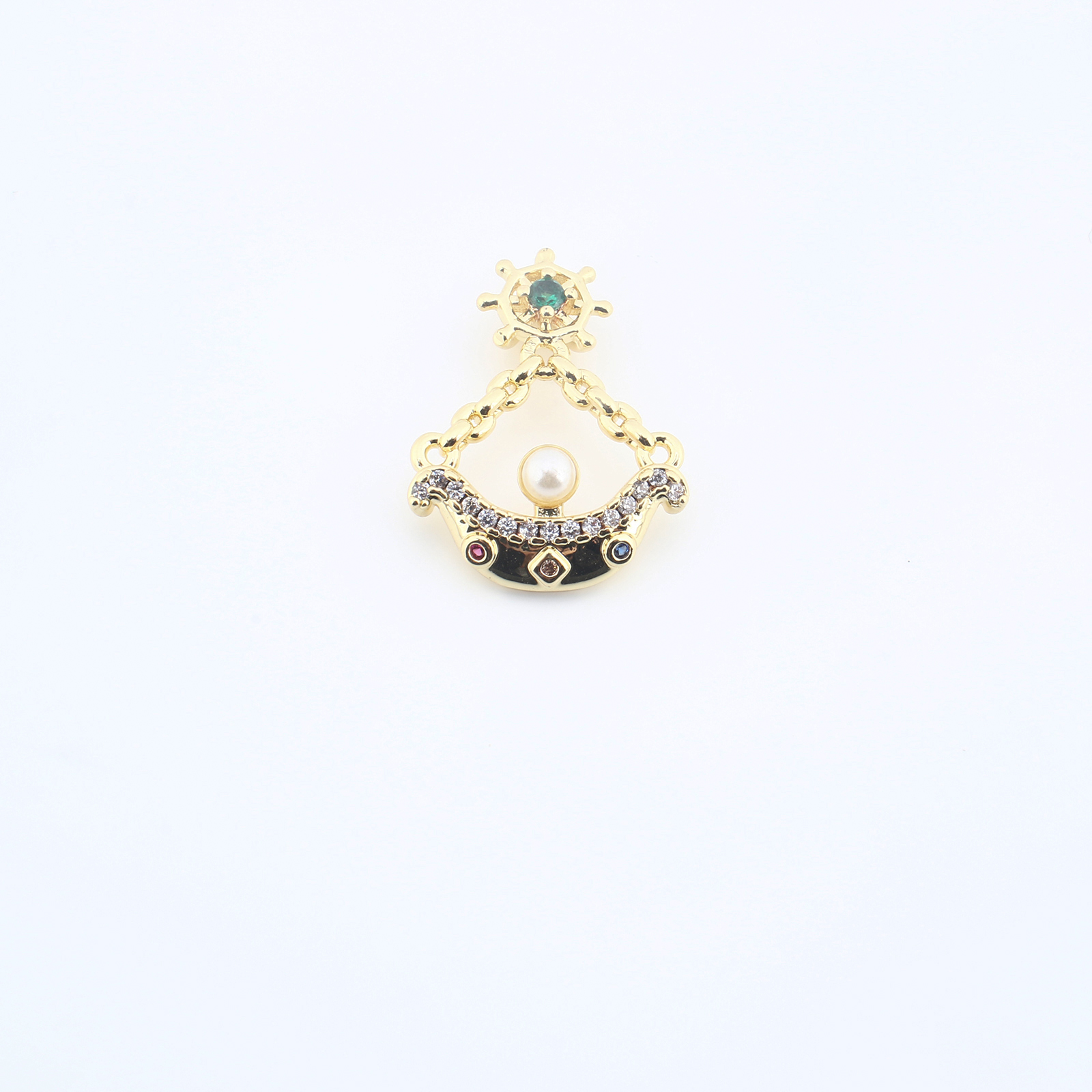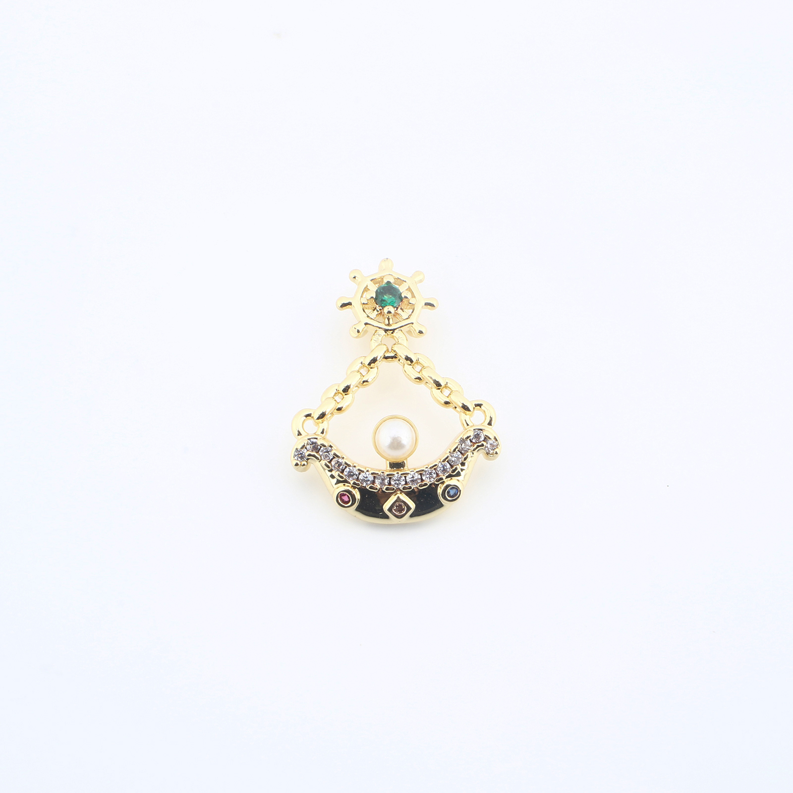 Cilindrata Zircone micro pavimenta il pendente di ottone, with perla in plastica, Nave, placcato, DIY & Micro spianare cubic zirconia, nessuno, 20x15x5mm, Venduto da PC