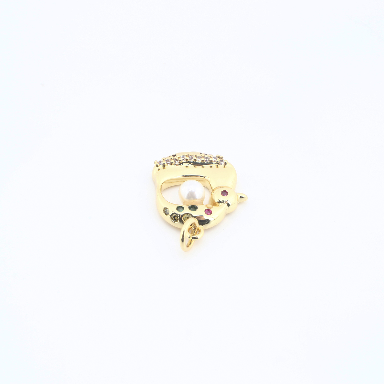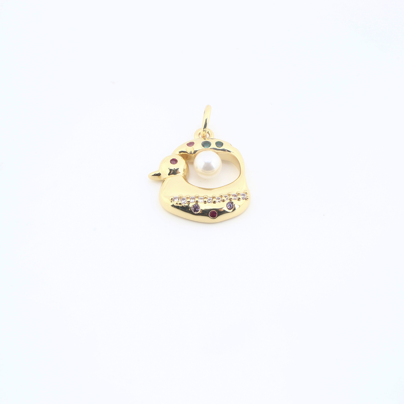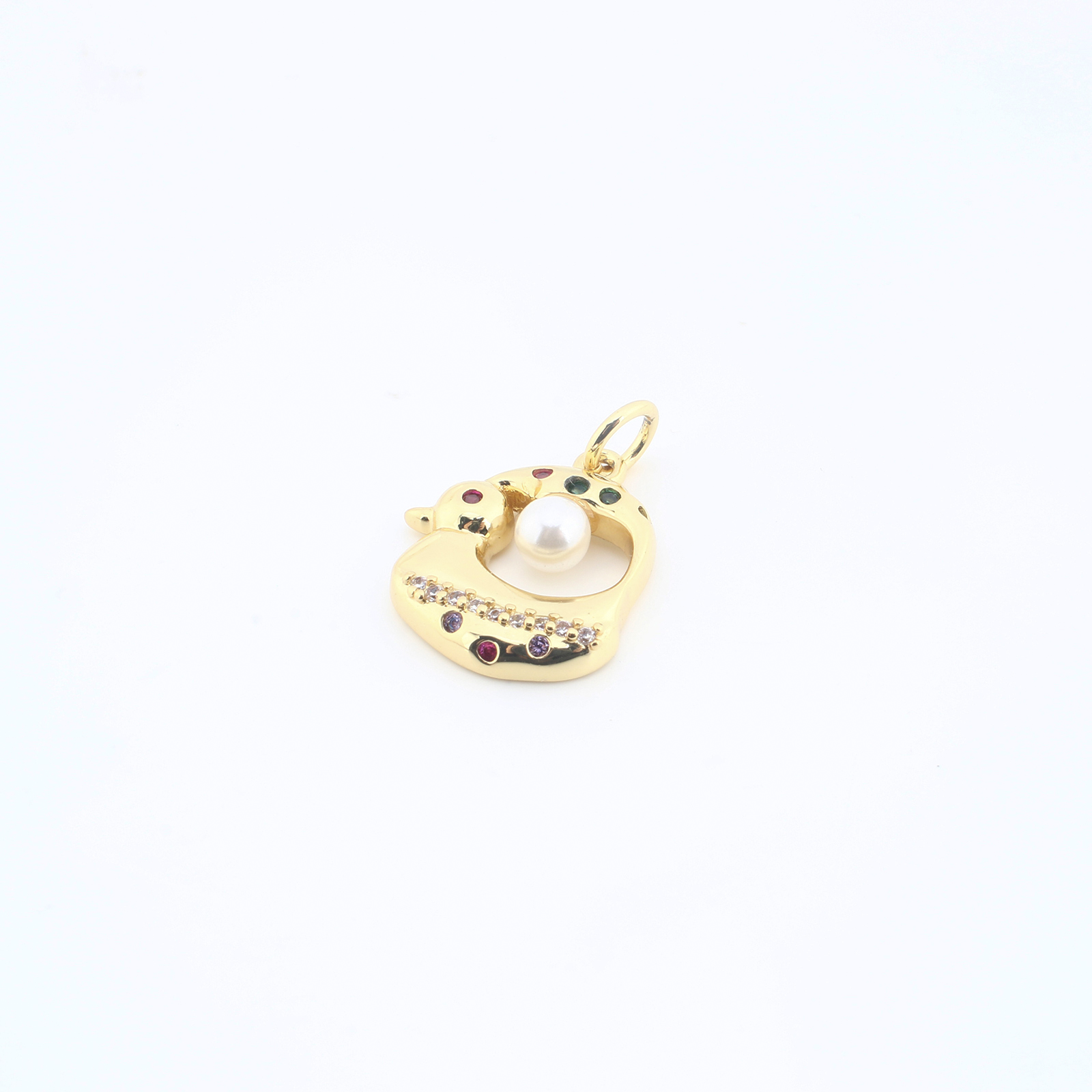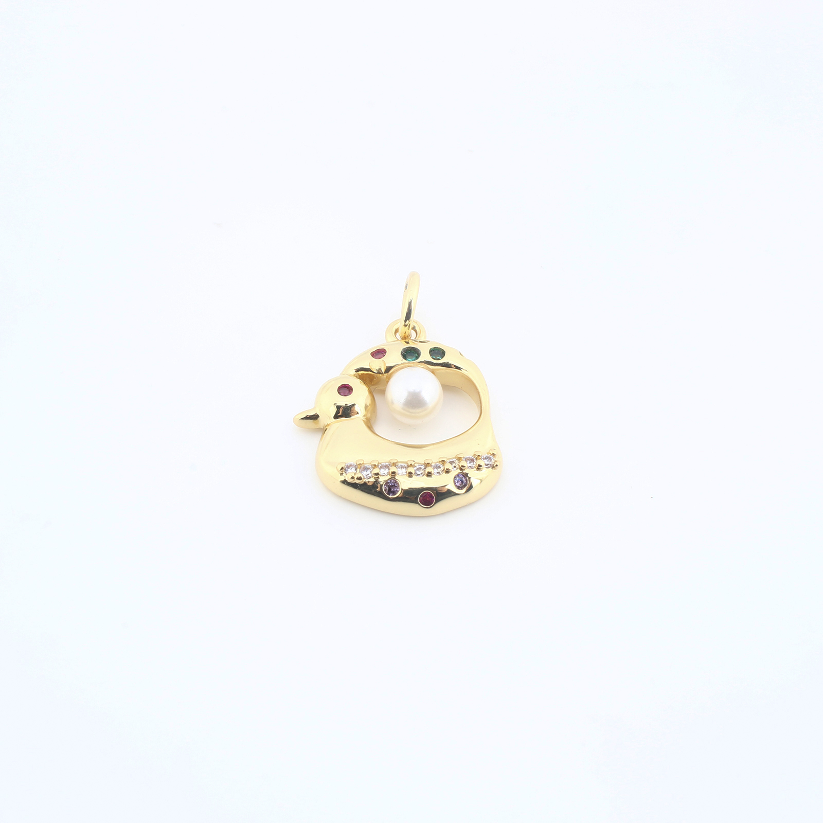 Cilindrata Zircone micro pavimenta il pendente di ottone, with perla in plastica, Anatra, placcato, DIY & Micro spianare cubic zirconia, nessuno, 16x15x4mm, Venduto da PC