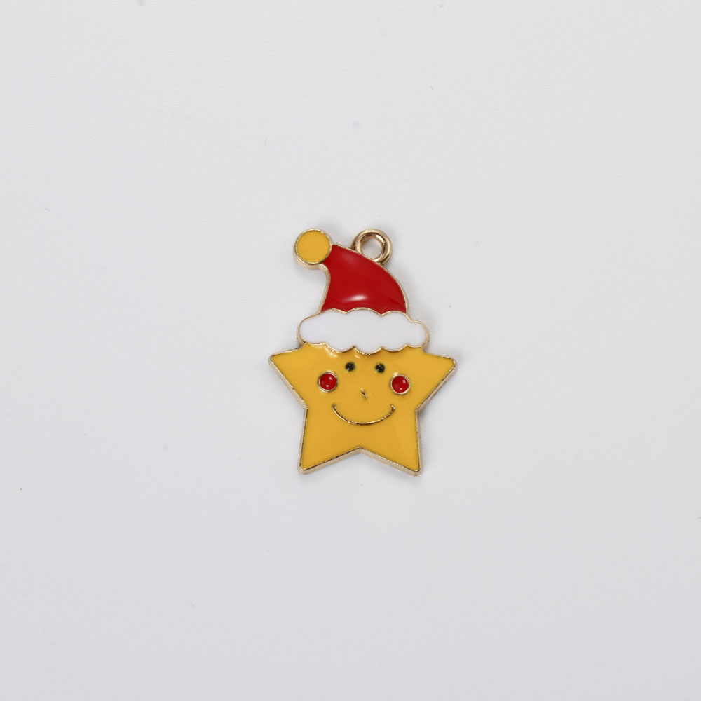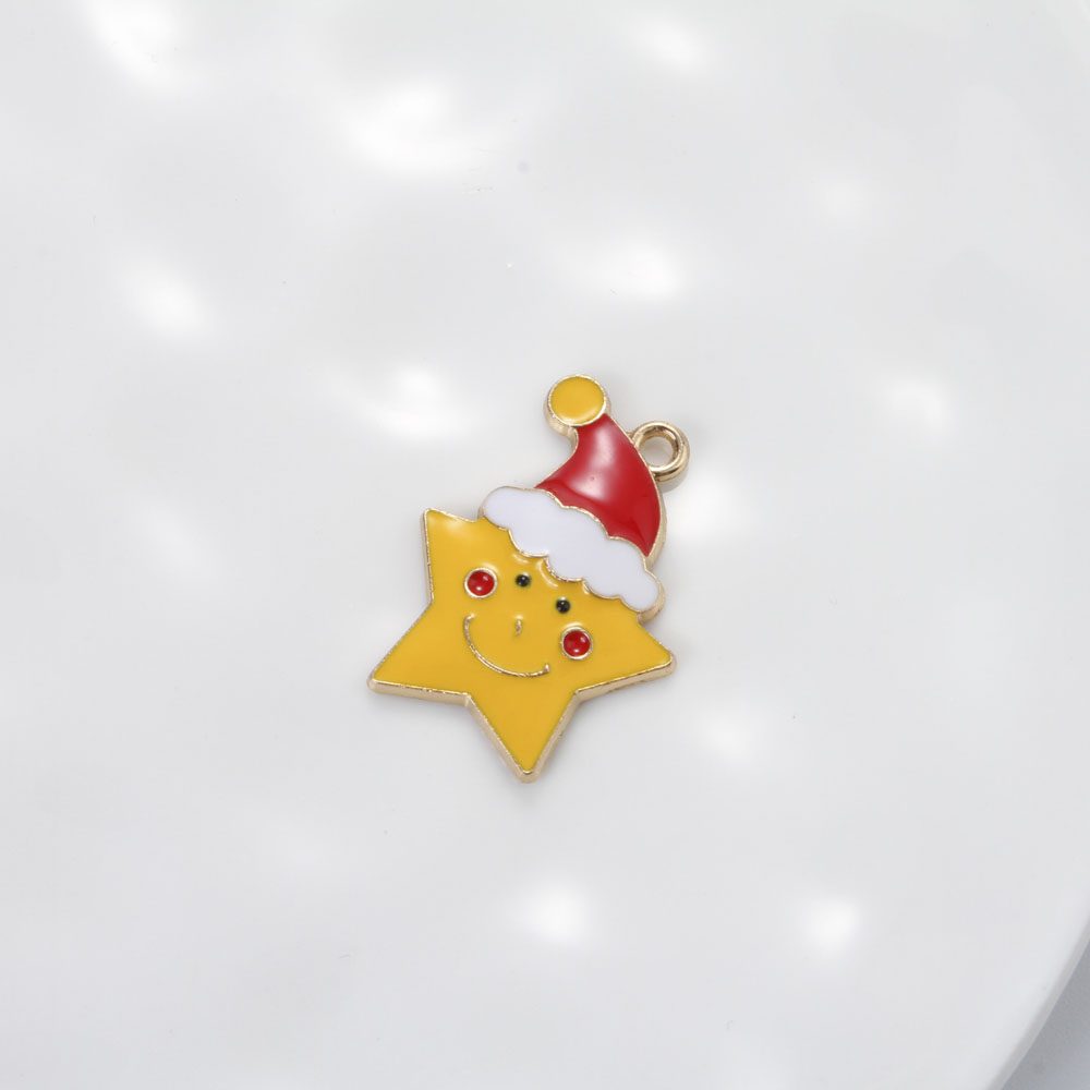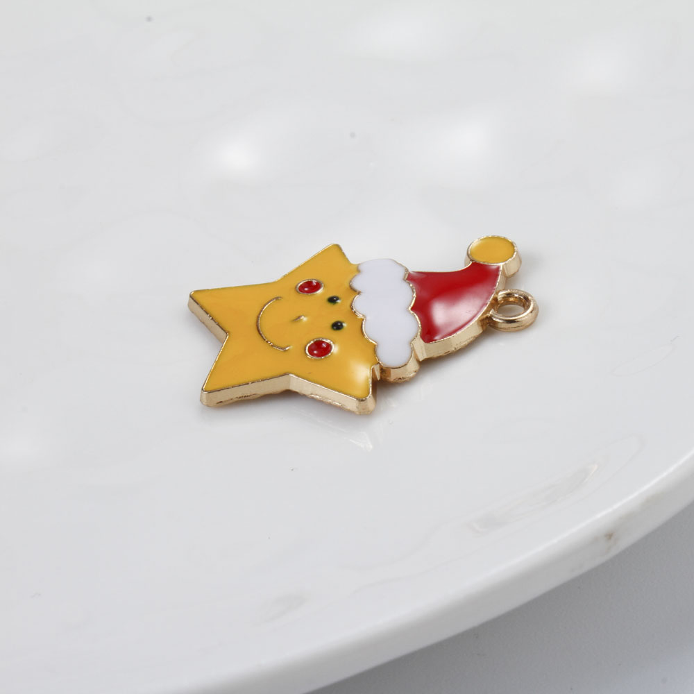 Ciondoli Natale in lega di zinco, lega in zinco, Stella, placcato color oro, Design natalizio & DIY & smalto, colori misti, 25x19.30x2.60mm, Venduto da PC
