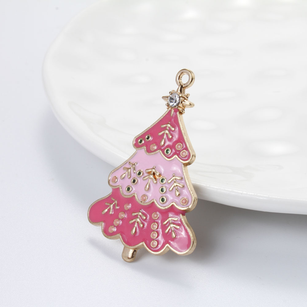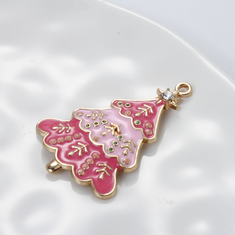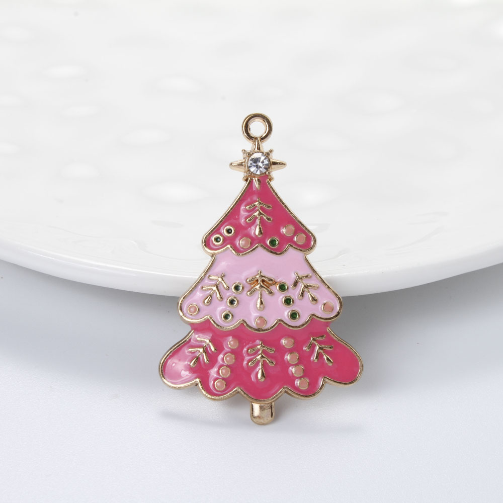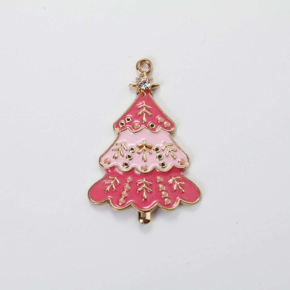 Ciondoli Natale in lega di zinco, lega in zinco, Albero di Natale, placcato color oro, DIY & smalto & con strass, colori misti, 44x28x2.80mm, Venduto da PC