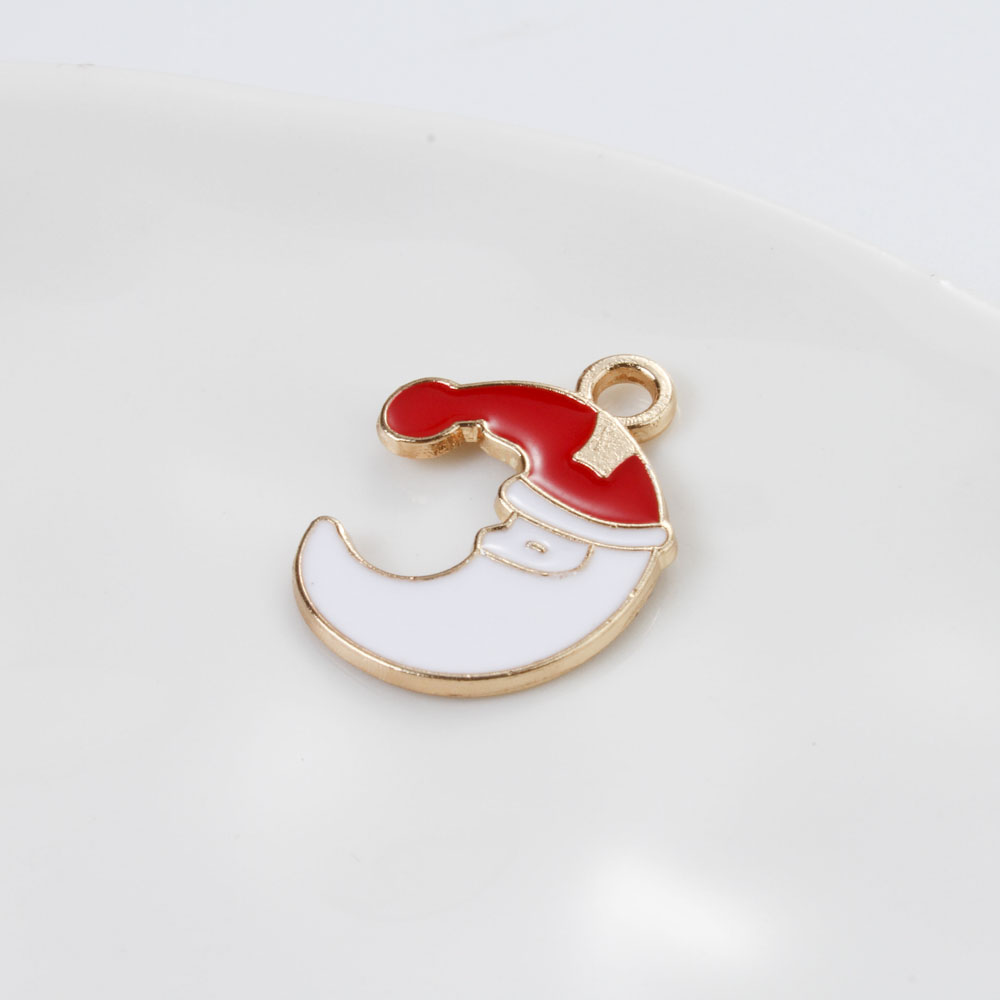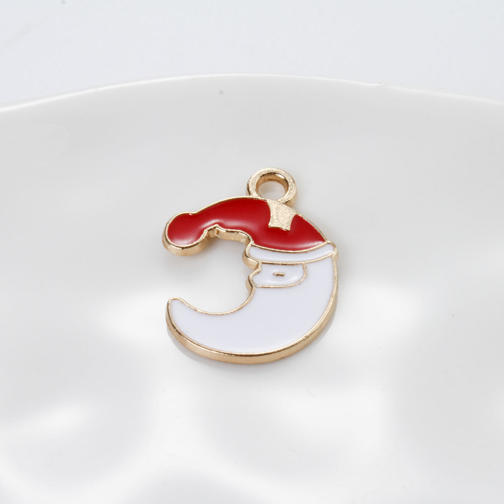 Ciondoli Natale in lega di zinco, lega in zinco, Luna, placcato color oro, Design natalizio & DIY & smalto, colori misti, 19.60x16x1.20mm, Venduto da PC