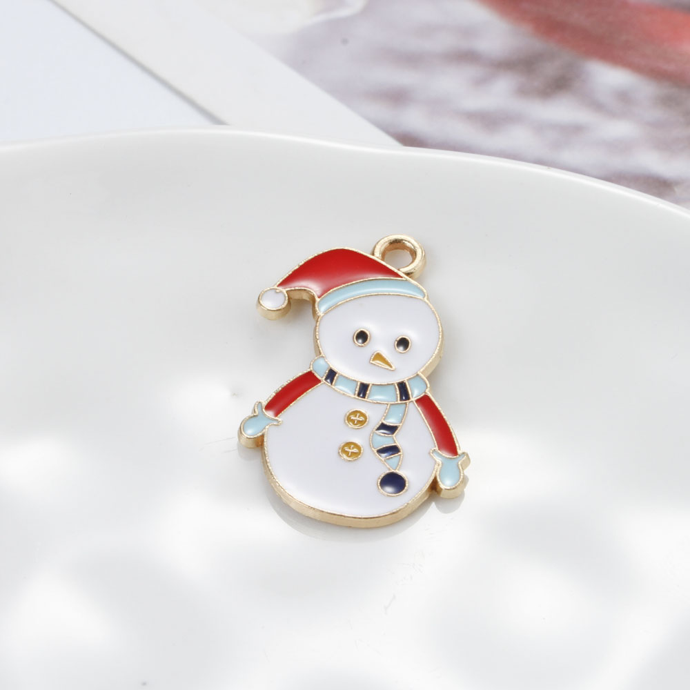 Ciondoli Natale in lega di zinco, lega in zinco, Pupazzo di eve, placcato color oro, Design natalizio & DIY & smalto, colori misti, 24.50x16.30x1.10mm, Venduto da PC