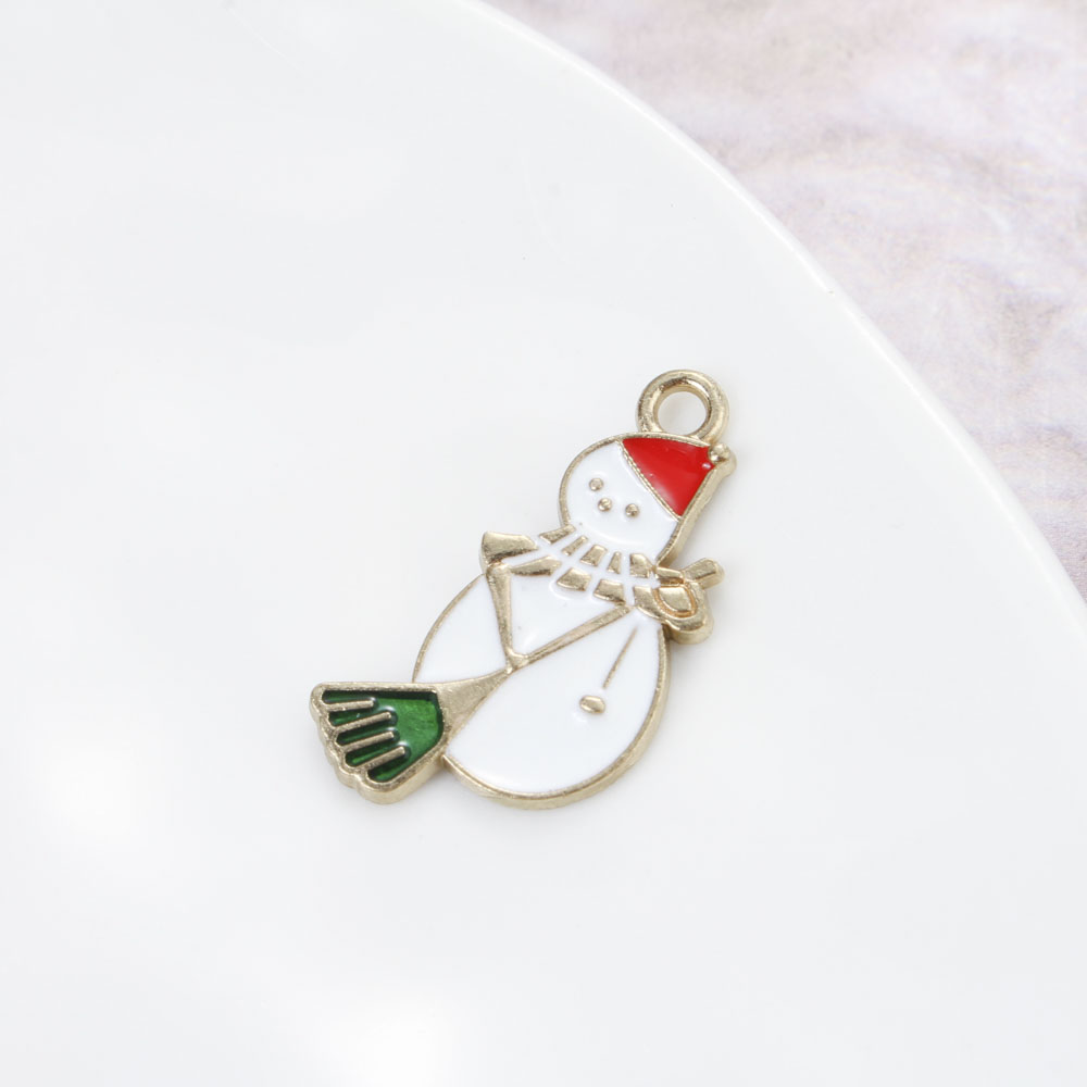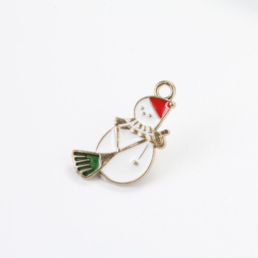 Ciondoli Natale in lega di zinco, lega in zinco, Pupazzo di eve, placcato color oro, Design natalizio & DIY & smalto, colori misti, 24x12x11mm, Venduto da PC