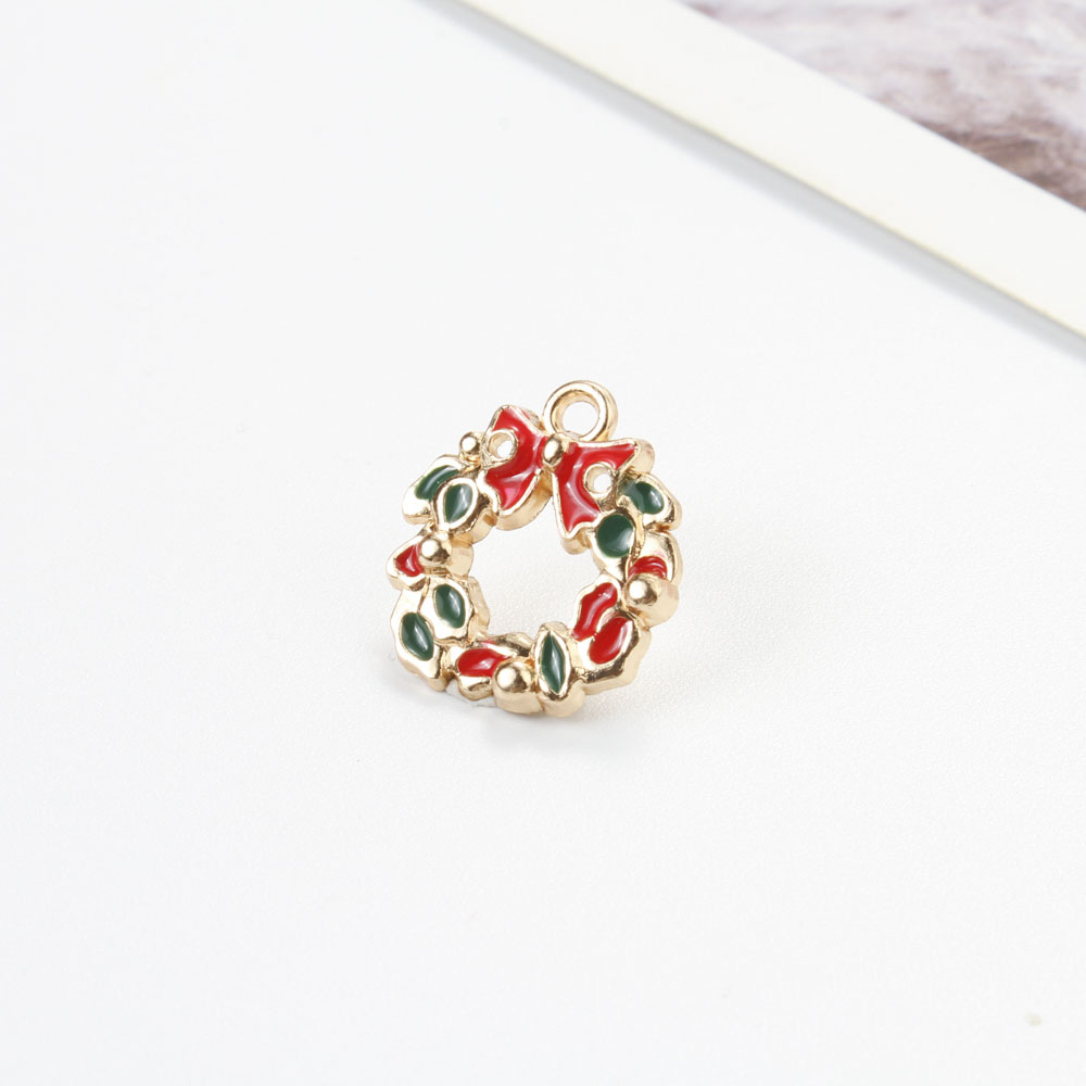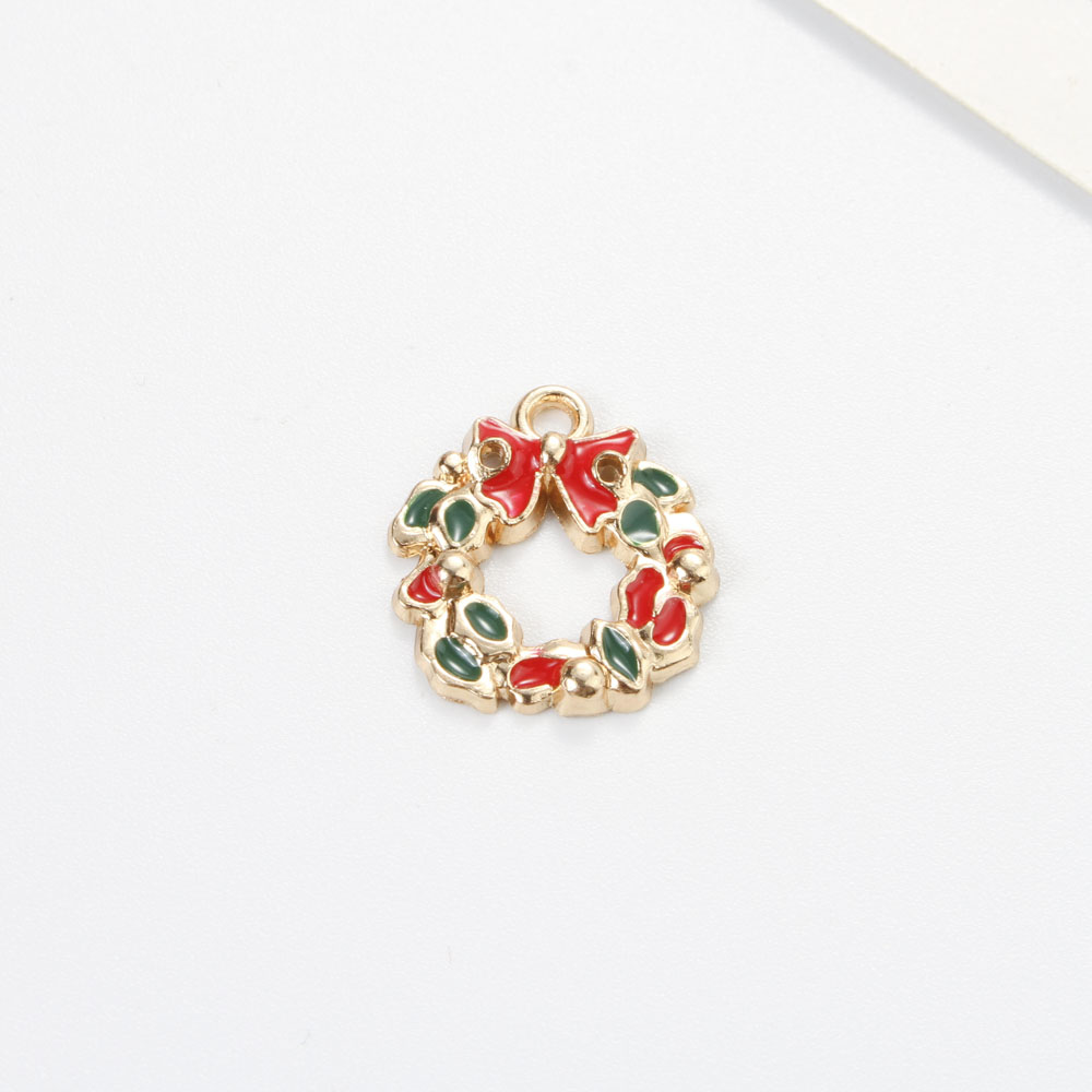 Ciondoli Natale in lega di zinco, lega in zinco, Ghirlanda natalizia, placcato color oro, DIY & smalto, colori misti, 17.30x15x2.50mm, Venduto da PC