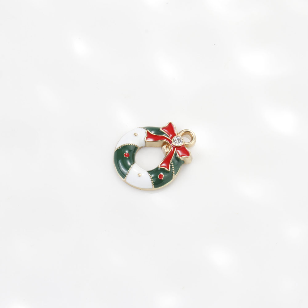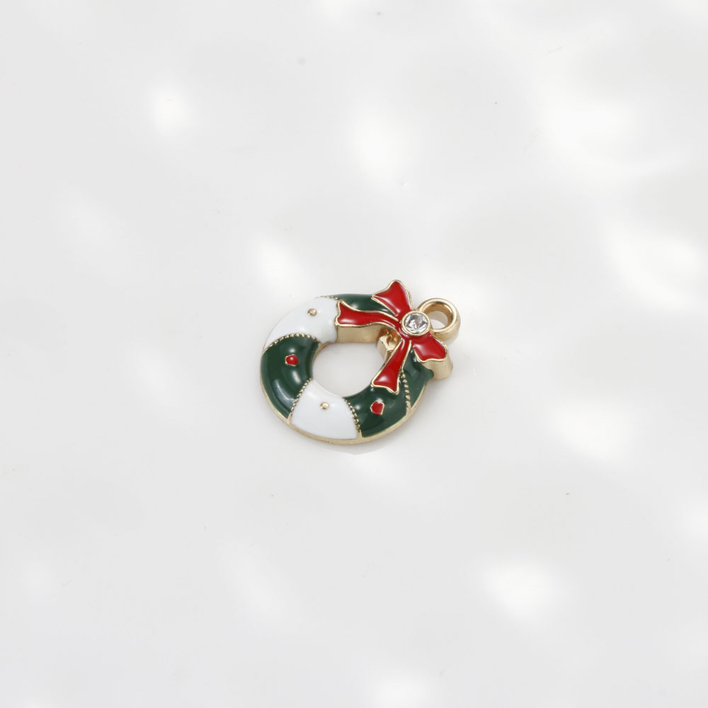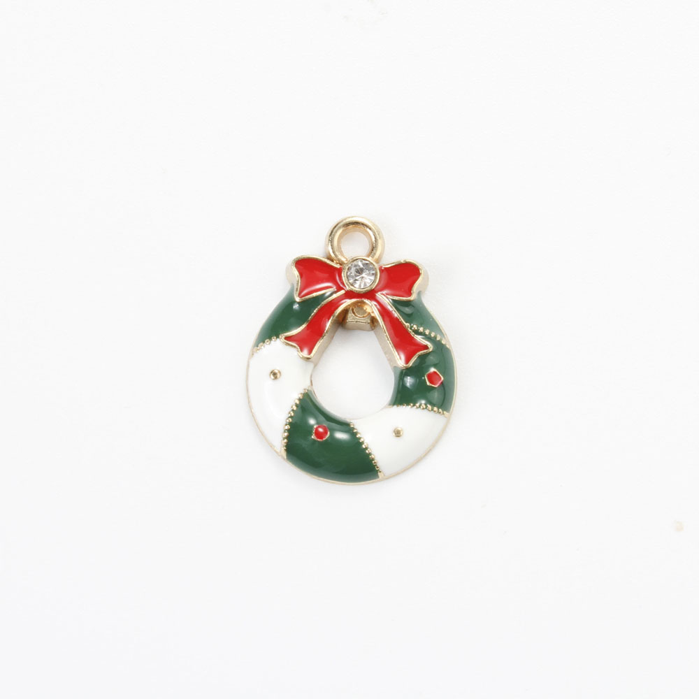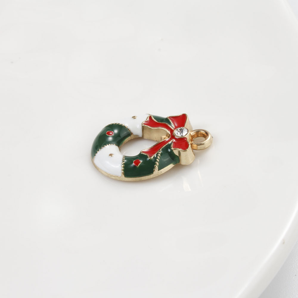 Ciondoli Natale in lega di zinco, lega in zinco, Ghirlanda natalizia, placcato color oro, DIY & smalto & con strass, colori misti, 18.80x15.40x2.80mm, Venduto da PC