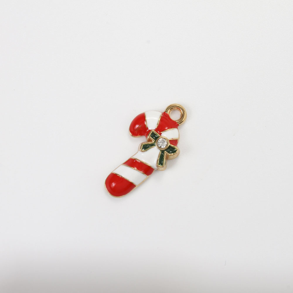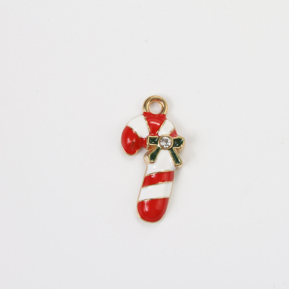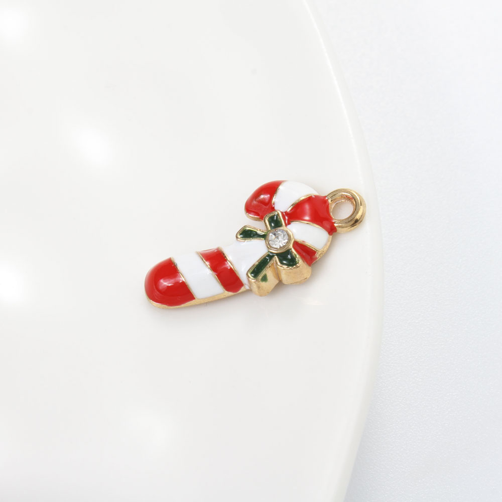 Ciondoli Natale in lega di zinco, lega in zinco, Barra di zucchero natalizia, placcato color oro, DIY & smalto & con strass, colori misti, 20x10x3.70mm, Venduto da PC