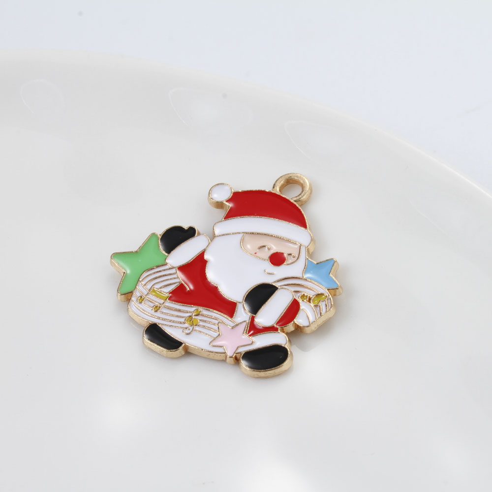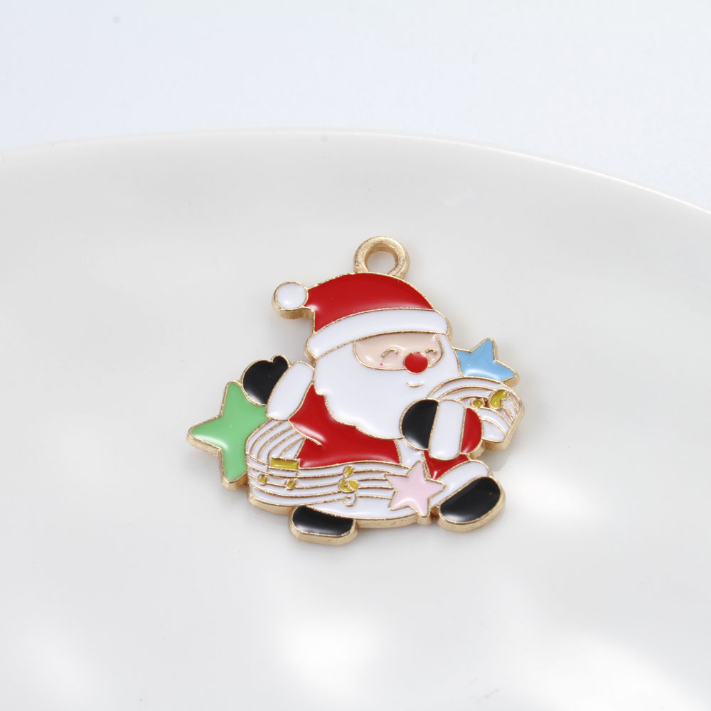 Ciondoli Natale in lega di zinco, lega in zinco, Babbo Natale, placcato color oro, DIY & smalto, colori misti, 24.20x24x1.10mm, Venduto da PC