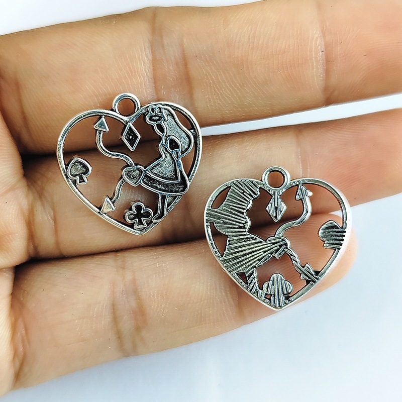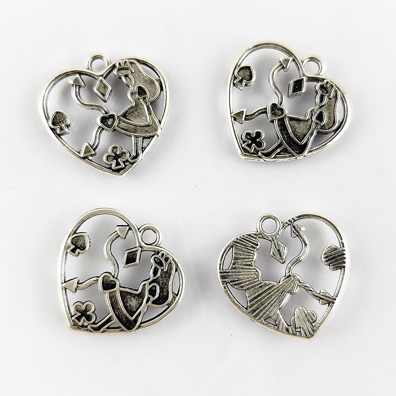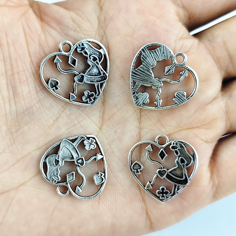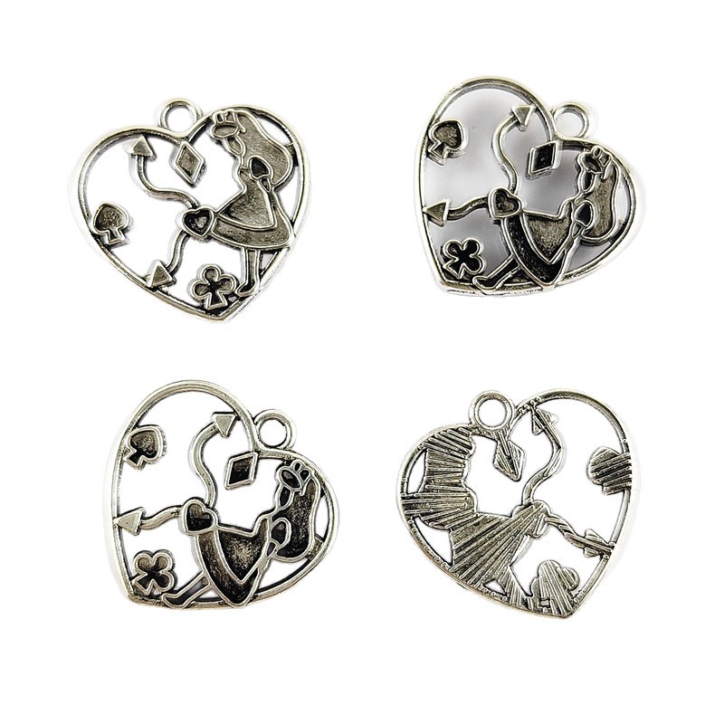 Ciondoli a cuore in lega di zinco, lega in zinco, placcato color argento, DIY & smalto & cavo, colori misti, 20x20mm, 100PC/borsa, Venduto da borsa