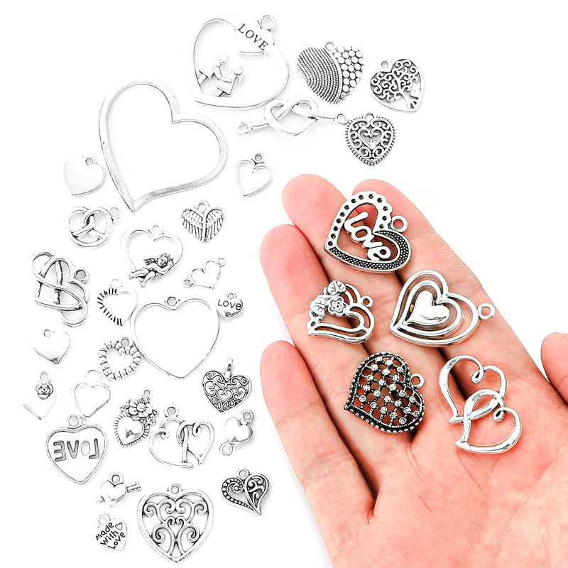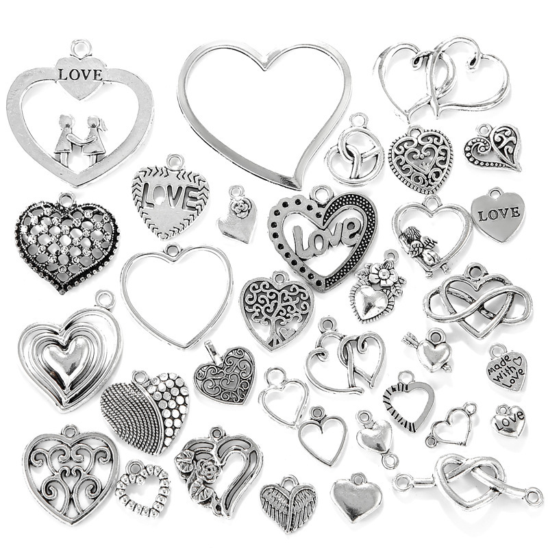 Ciondoli a cuore in lega di zinco, lega in zinco, placcato argento antico, DIY & stili diversi per la scelta, Venduto da PC