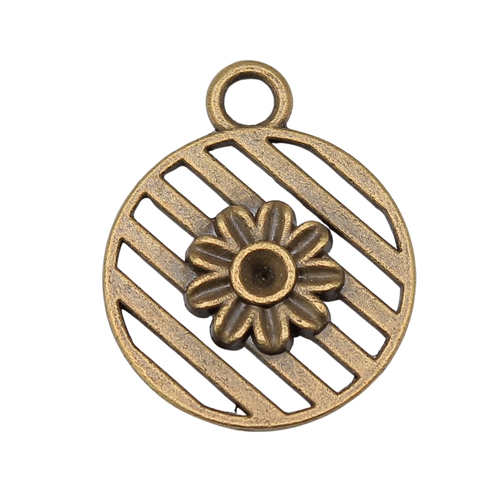 Ciondoli a fiore in lega di zinco, lega in zinco, Cerchio, placcato, DIY & cavo, color bronzo antico, 10PC/borsa, Venduto da borsa