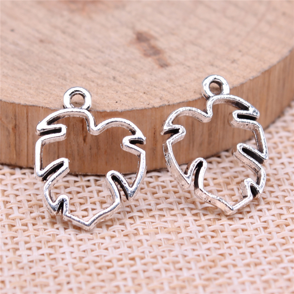 Ciondoli a foglia in lega di zinco, lega in zinco, placcato argento antico, DIY & cavo, 19x15mm, 20PC/borsa, Venduto da borsa