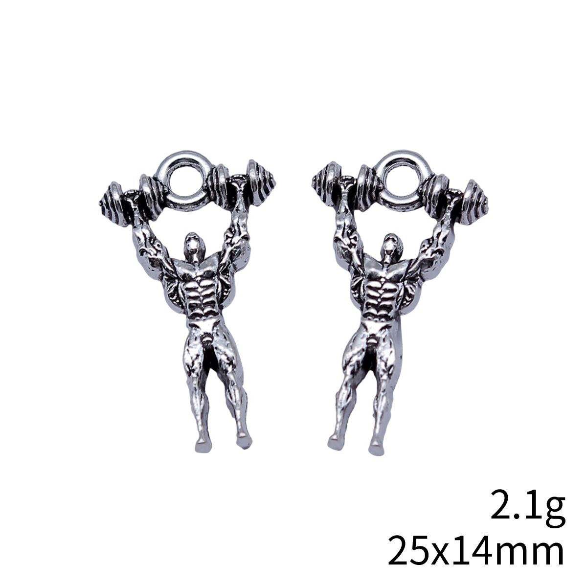 Ciondoli a forma di personaggio in lega di zinco, lega in zinco, Muscle Man, placcato, DIY, 10PC/borsa, Venduto da borsa