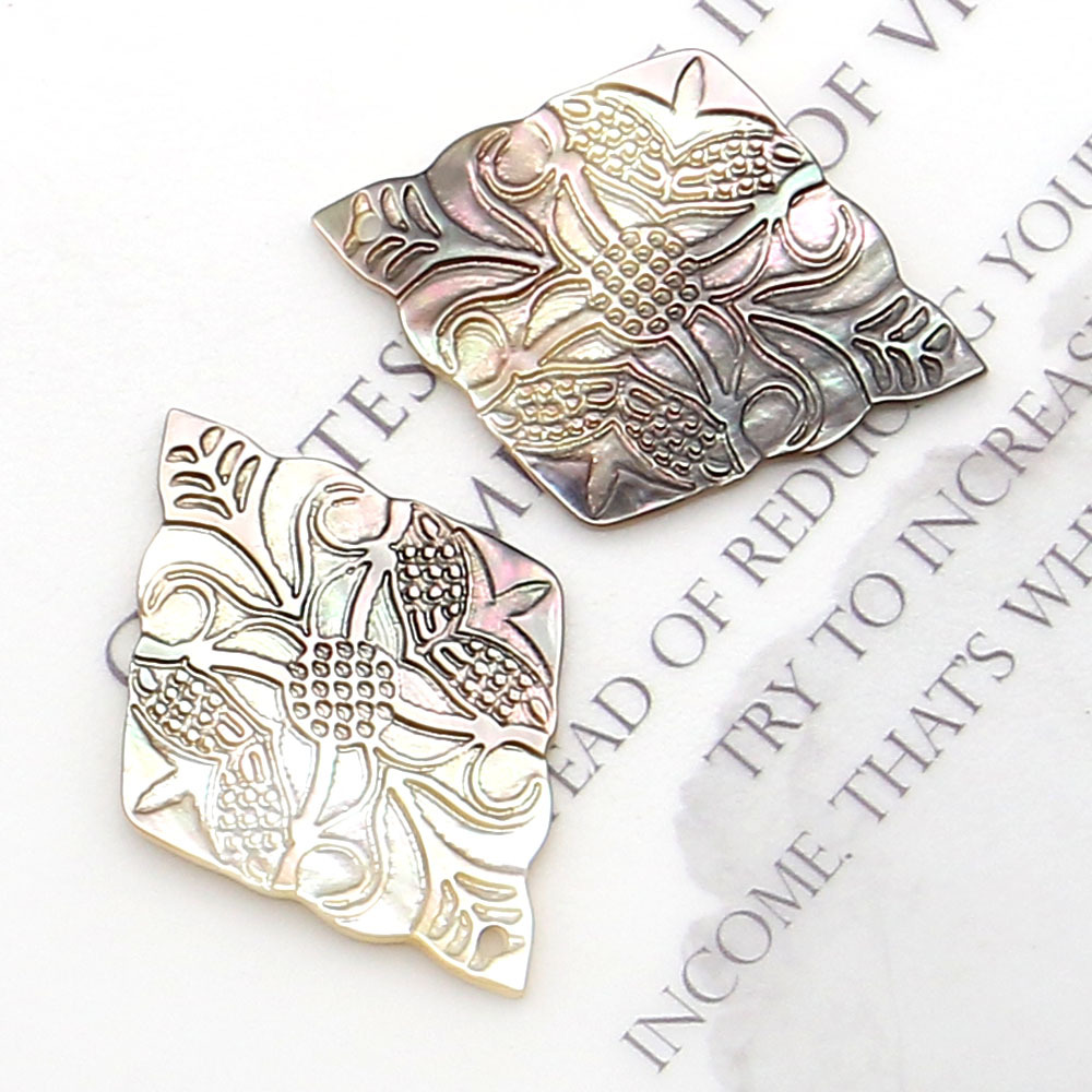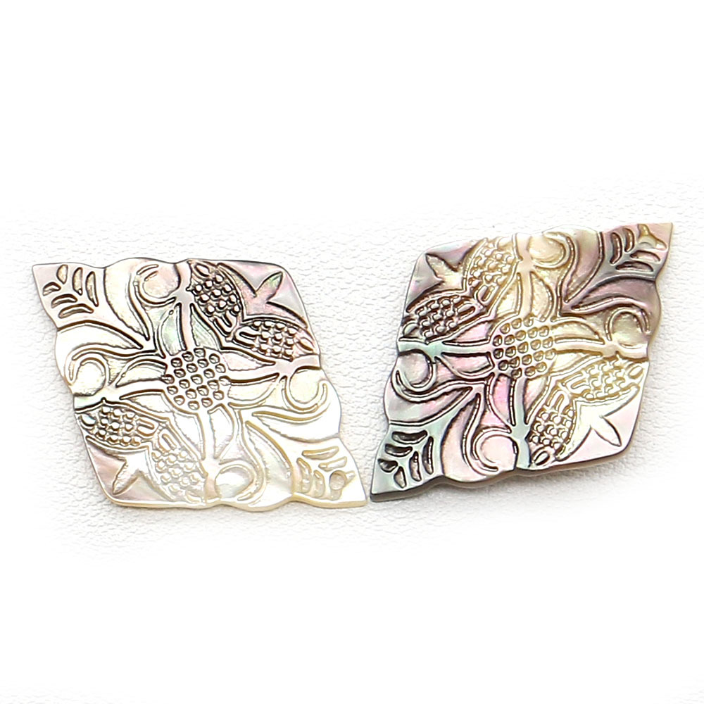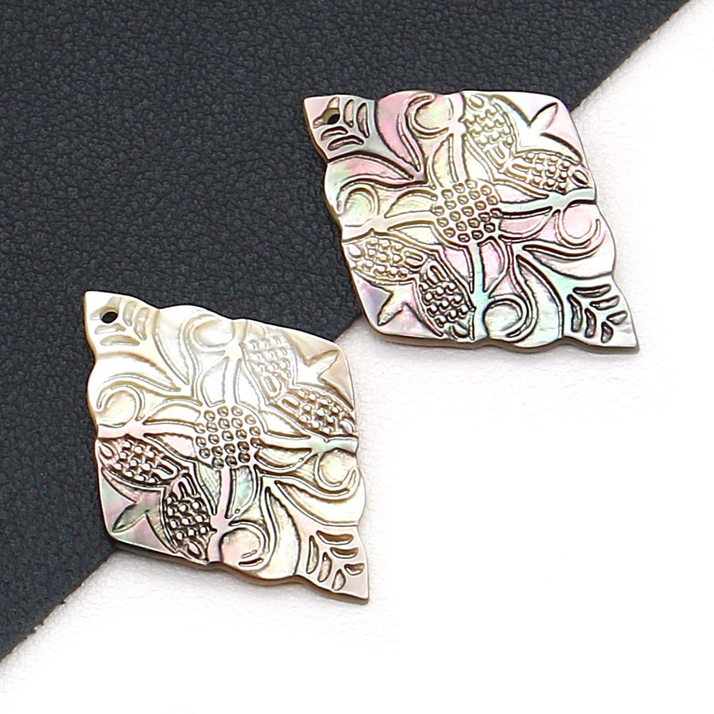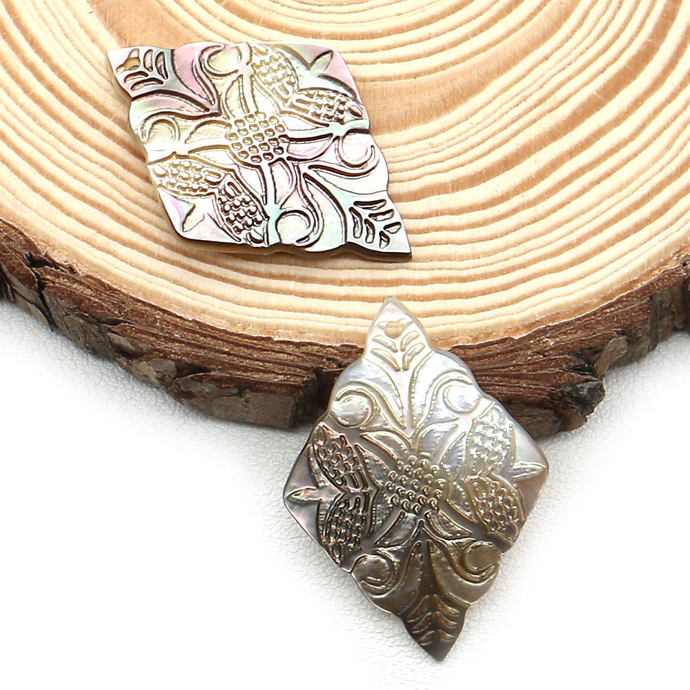 Ciondoli di conchiglia, Nero-Lip-Shell, Rhombus, Inciso, naturale & DIY, 24x34mm, Venduto da PC