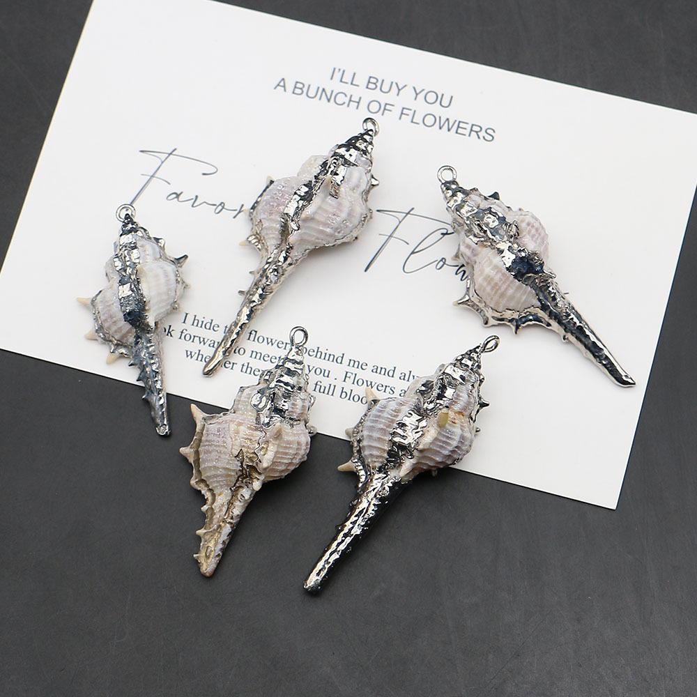 Ciondoli di conchiglia, with ottone, Lumaca di mare, placcato color argento, DIY, pendant length 20-50mm, Venduto da PC