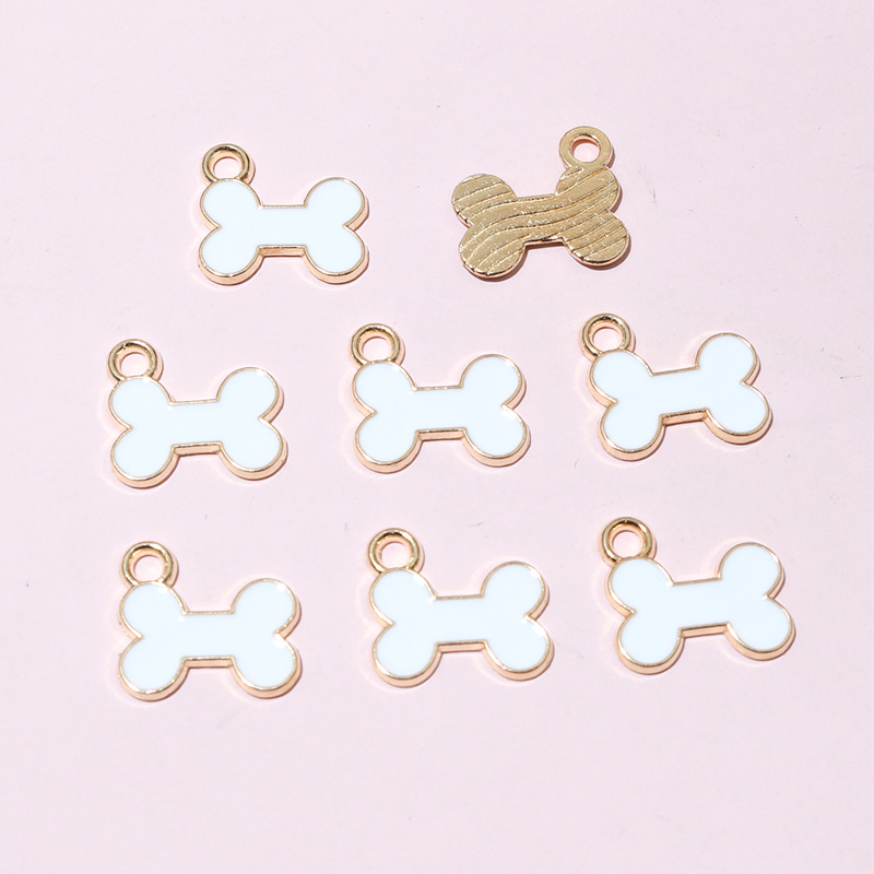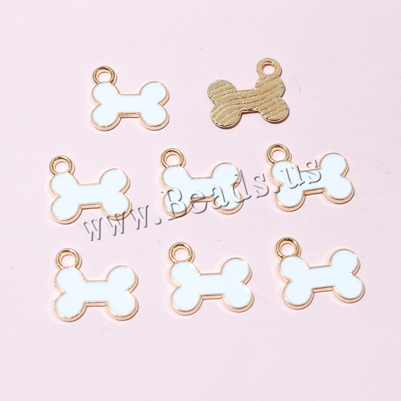 Ciondoli di smalto di lega di zinco, lega in zinco, Osso, placcato color oro, DIY, nessuno, assenza di nichel,piombo&cadmio, 12x13mm, Appross. 100PC/borsa, Venduto da borsa