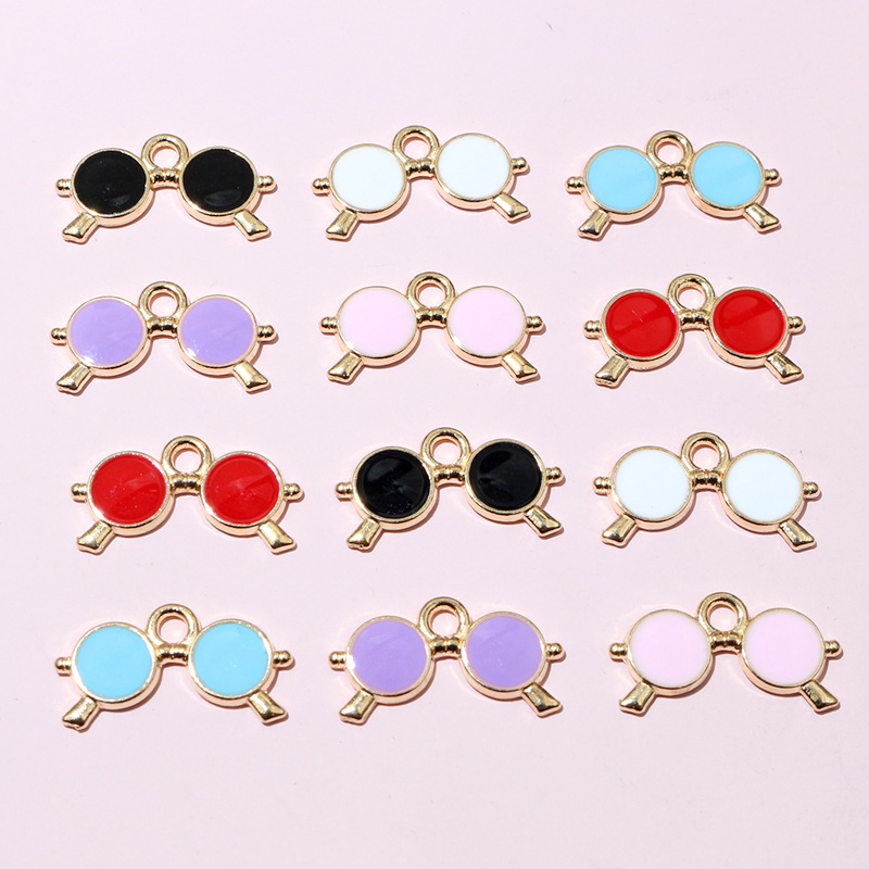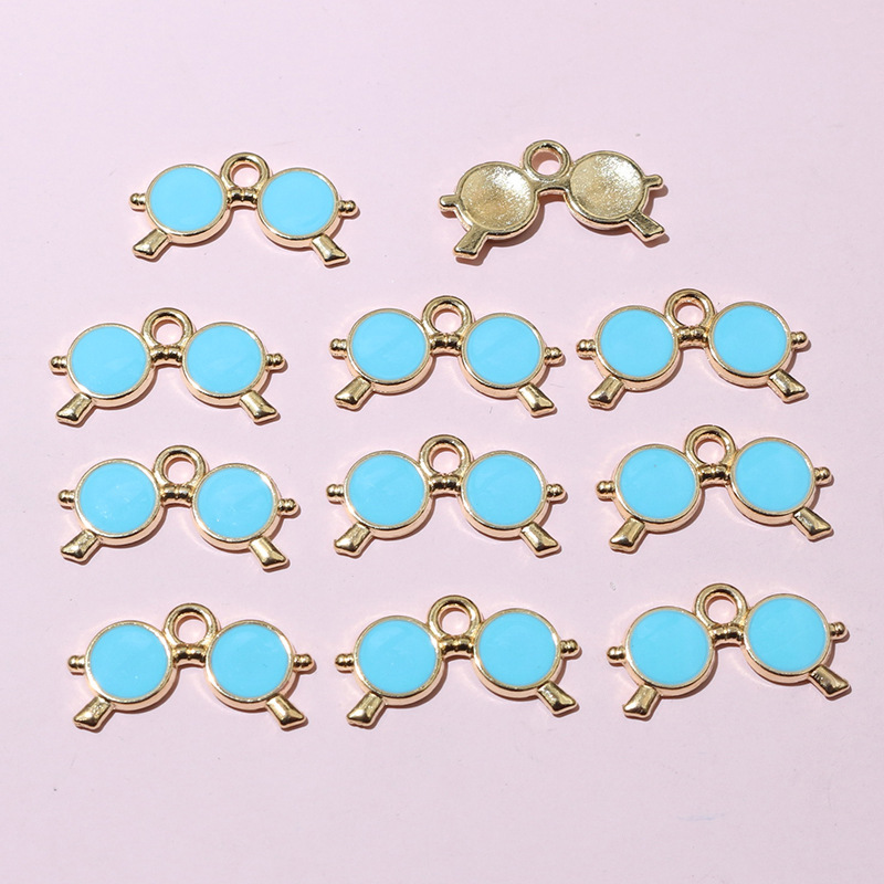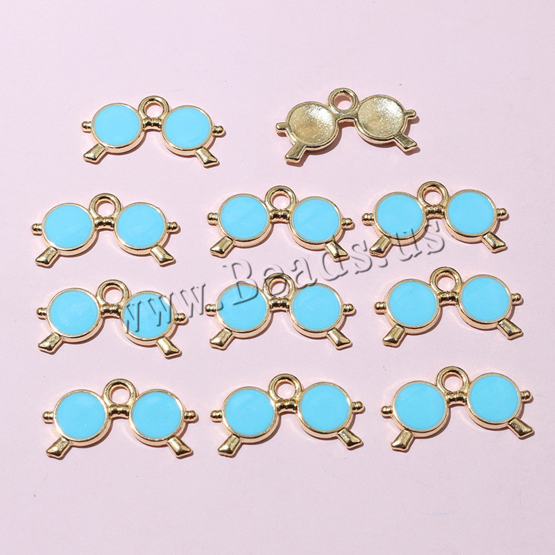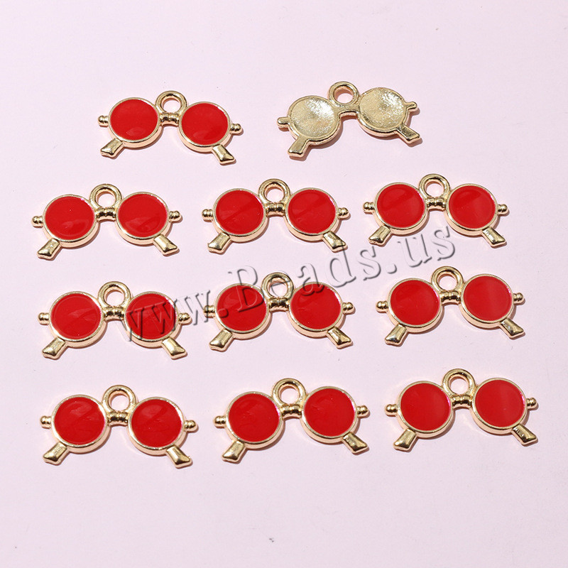 Ciondoli di smalto di lega di zinco, lega in zinco, Occhiali, placcato color oro, DIY, nessuno, assenza di nichel,piombo&cadmio, 10x18mm, Appross. 100PC/borsa, Venduto da borsa