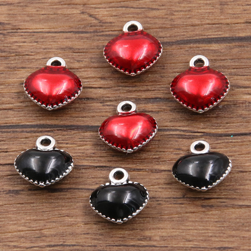 Ciondoli di smalto di lega di zinco, lega in zinco, Cuore, placcato, DIY, nessuno, assenza di nichel,piombo&cadmio, 11x13mm, 100PC/borsa, Venduto da borsa