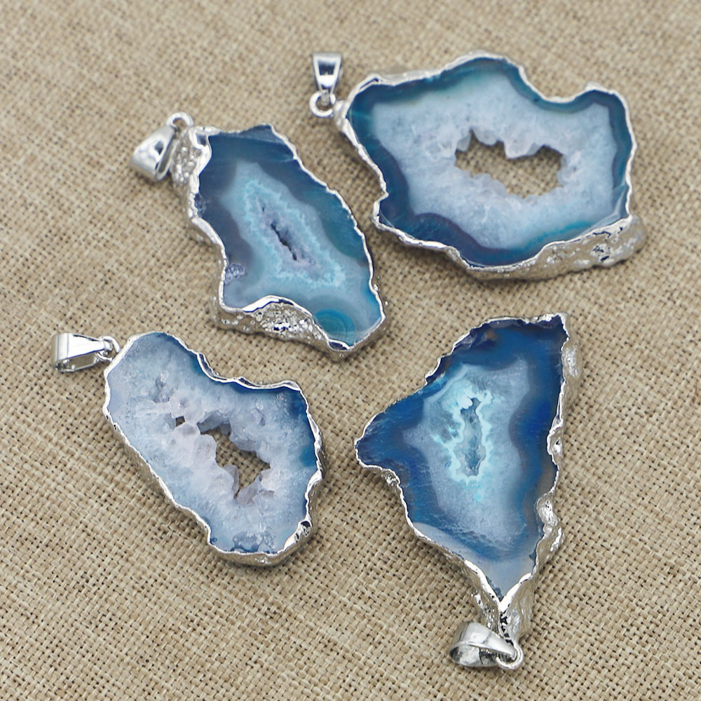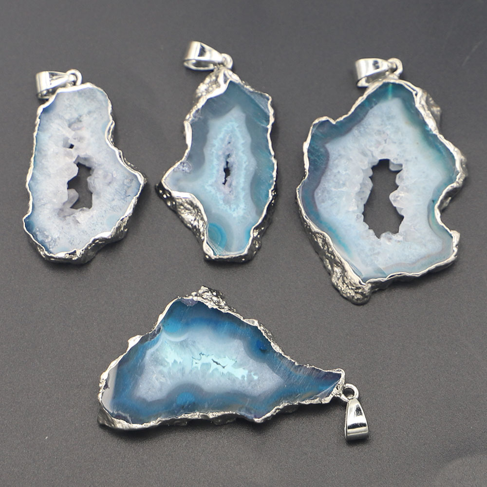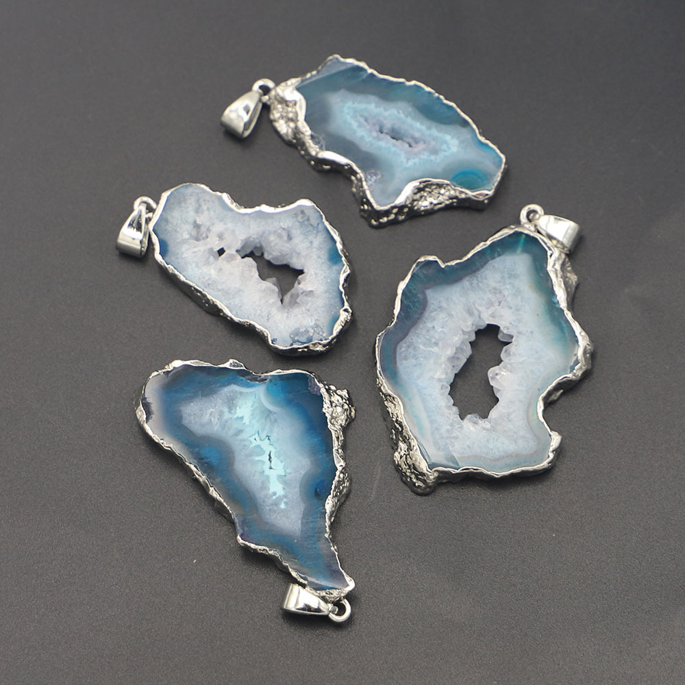 Ciondoli gioielli in Agata, agata Brasile, with ottone, Irregolare, placcato color argento, DIY, blu, about:50-35mmu00d735-20mmu00d76mm, Venduto da PC