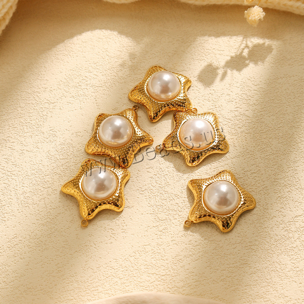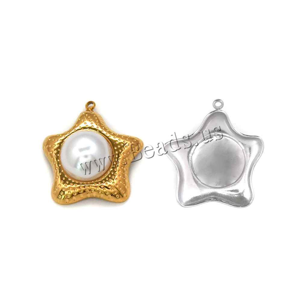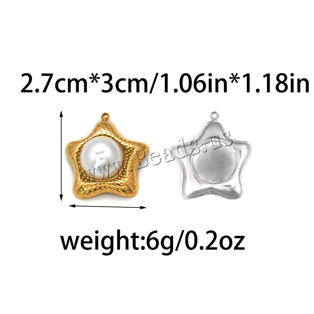 Ciondoli gioielli in acciaio inox, 304 acciaio inox, with perla in plastica, Stella, DIY, nessuno, 27x30mm, 10PC/borsa, Venduto da borsa