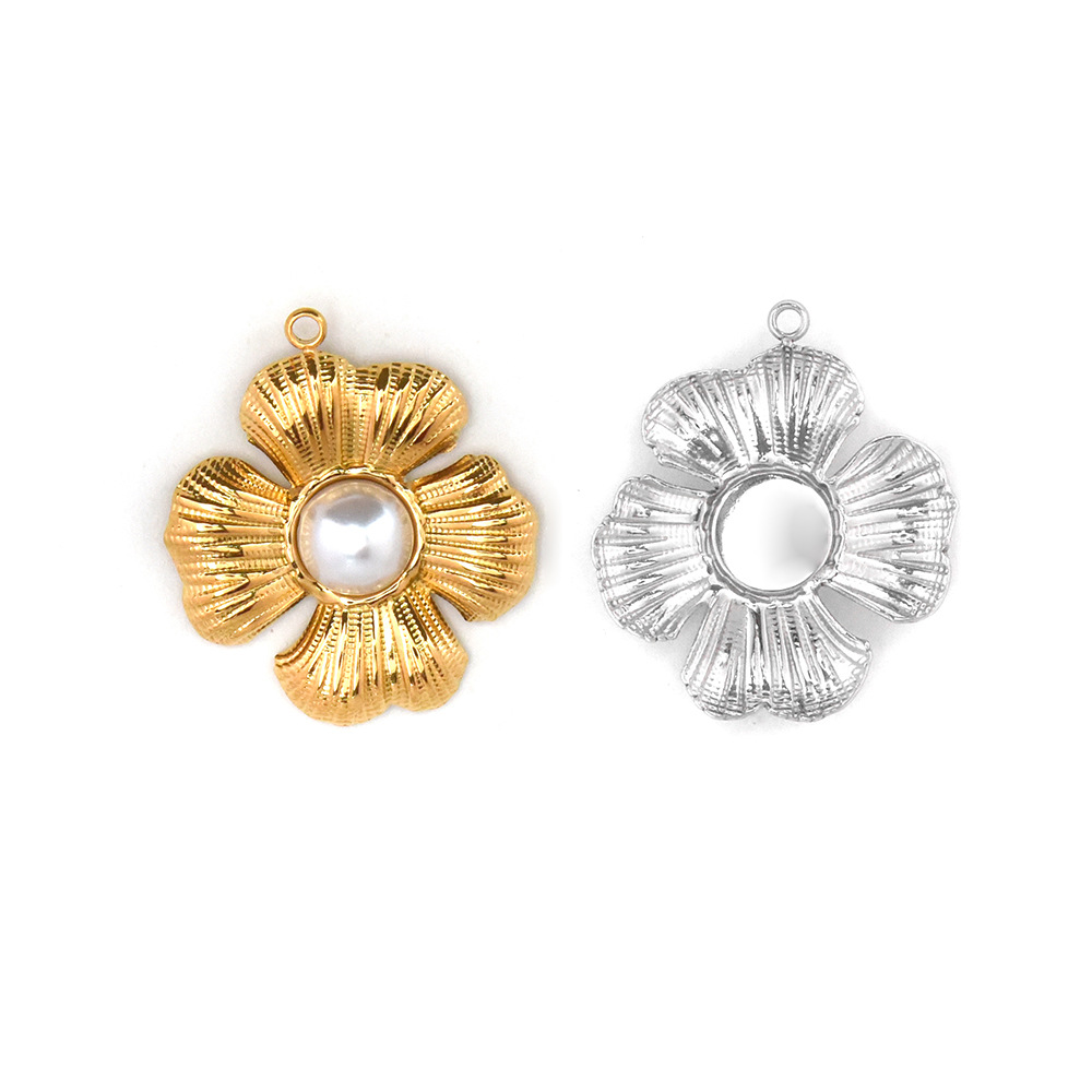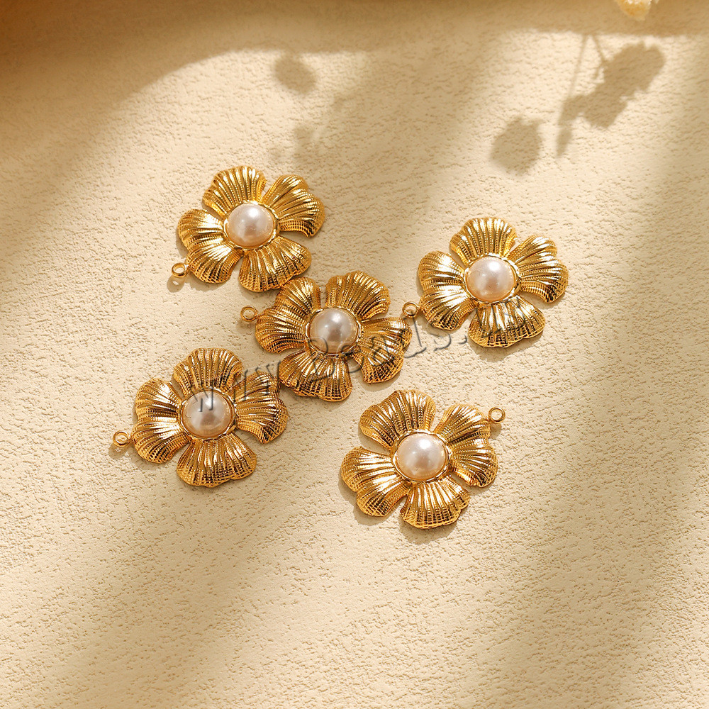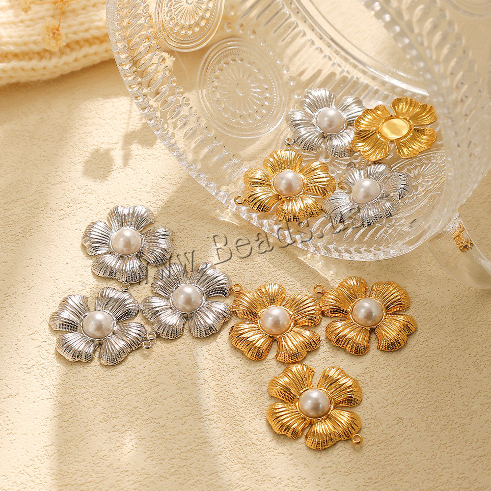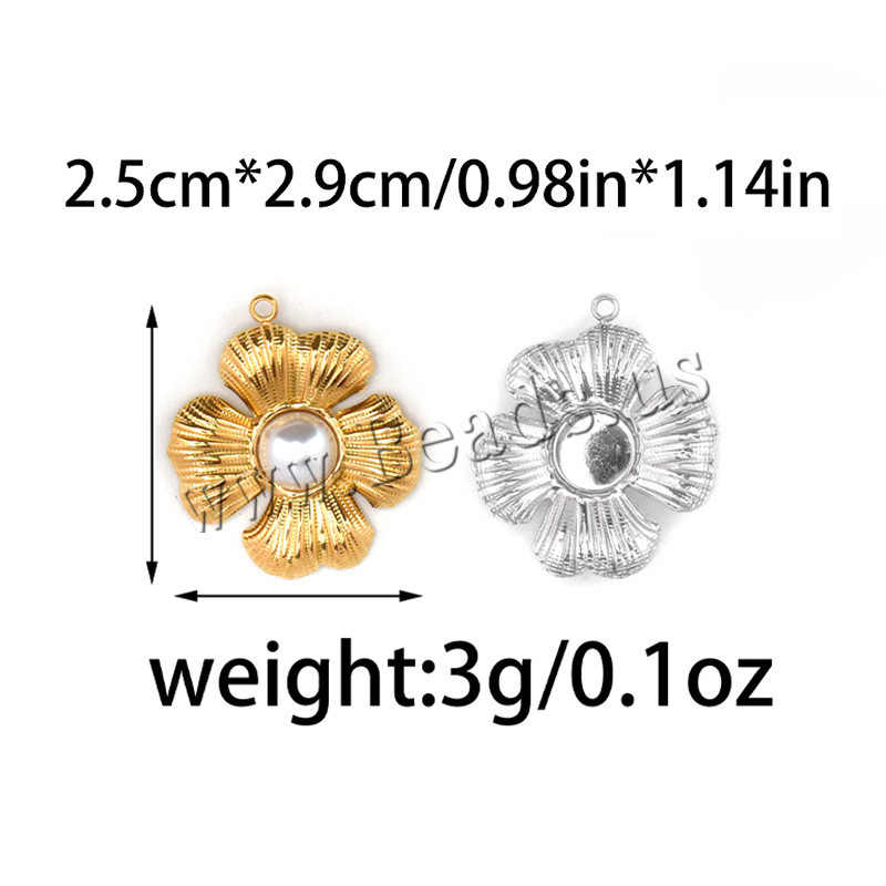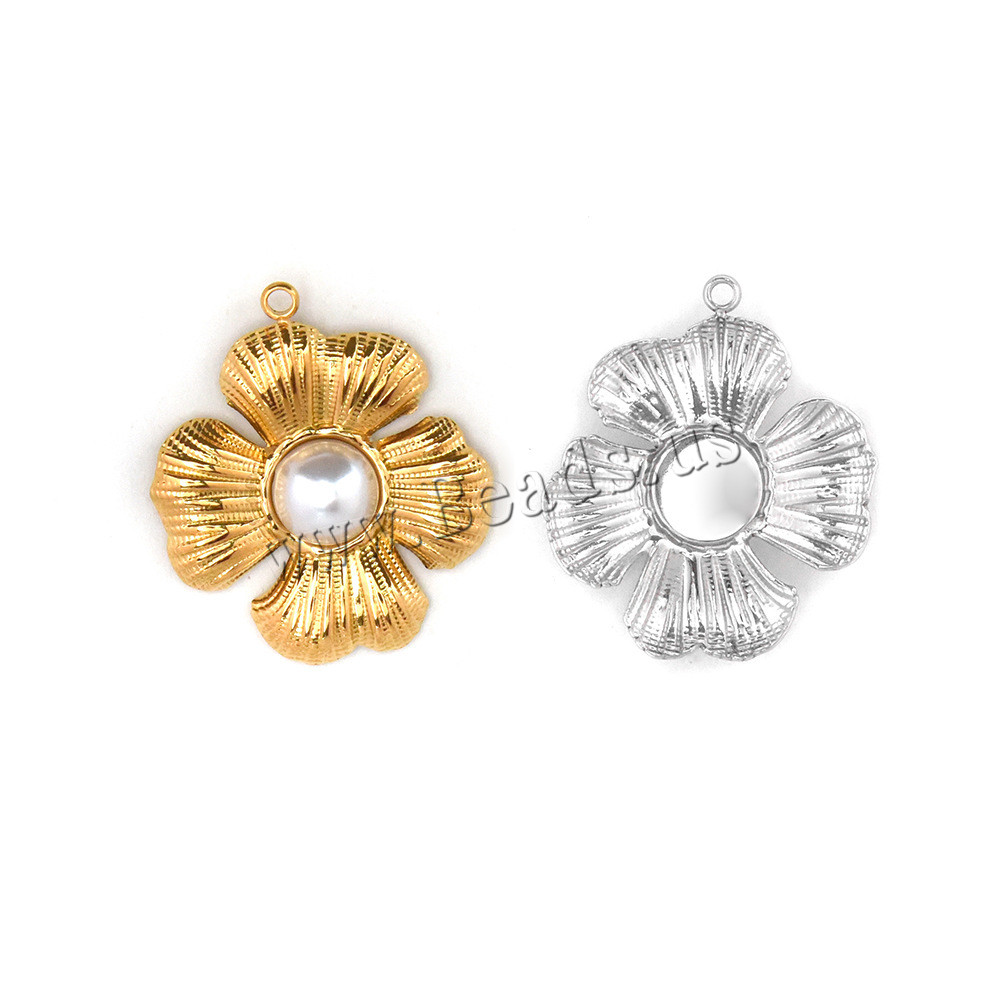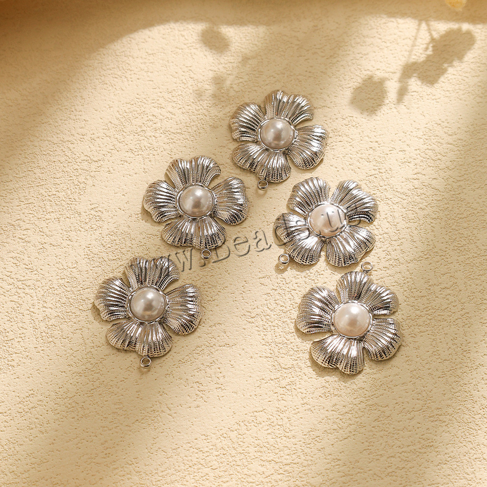 Ciondoli gioielli in acciaio inox, 304 acciaio inox, with perla in plastica, Fiore, DIY, nessuno, 25x29mm, 10PC/borsa, Venduto da borsa