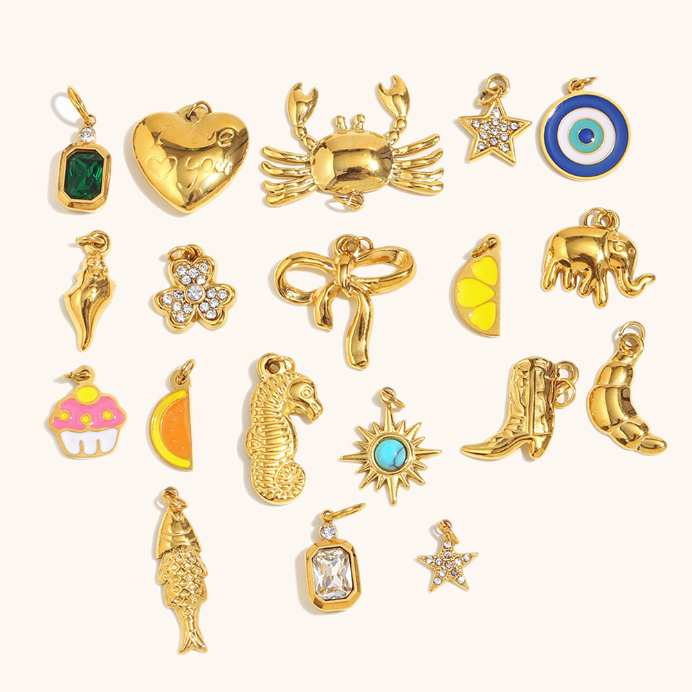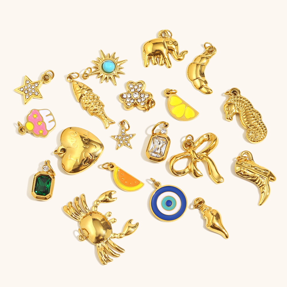 1:Little seahorse pendant-gold2:Bow pendant-gold3:Eight-pointed star turquoise pendant-gold4:Zircon pentagram pendant-gold5:Elephant pendant-gold6:Salmon pendant - gold7:Love pendant-gold8:Cowboy boot pendant-gold9:Zircon flower pendant - gold10:Crab pendant-gold11:Conch pendant-gold12:Horn pendant-gold13:Small square brick zircon pendant-gold14:Small square brick zircon pendant-gold-white diamond15:Thin five-pointed star pendant-gold16:Semi-circle flower pendant-gold17:Mushroom pendant-gold18:Semi-circle cantaloupe pendant-gold19:Multi-layered oil dripping eye pendant-gold