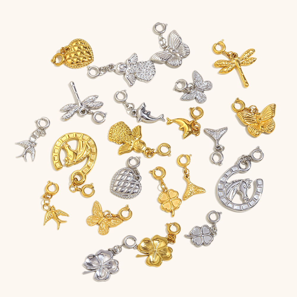 1:Swallow pendant-gold2:Swallow pendant-steel color3:Fish tail pendant-gold4:Fish tail pendant-steel color5:Four-leaf clover pendant-gold6:Four-leaf clover pendant-steel color7:Love bag pendant-gold8:Love bag pendant-steel color9:Butterfly pendant-gold10:Butterfly pendant-steel color11:Flower pendant-gold12:Flower pendant-steel color13:Dragonfly pendant-gold14:Dragonfly pendant-steel color15:Angel pendant-gold16:Angel pendant-steel color17:Horse head pendant-gold18:Horse head pendant-steel color19:Butterfly pendant-gold-220:Butterfly pendant-steel color-221:Dolphin pendant-gold22:Dolphin pendant-steel color23:Flower zircon pendant - gold24:Flower zircon pendant-steel color