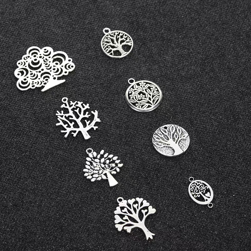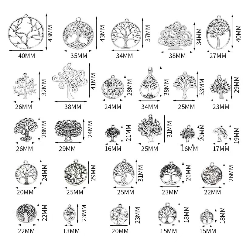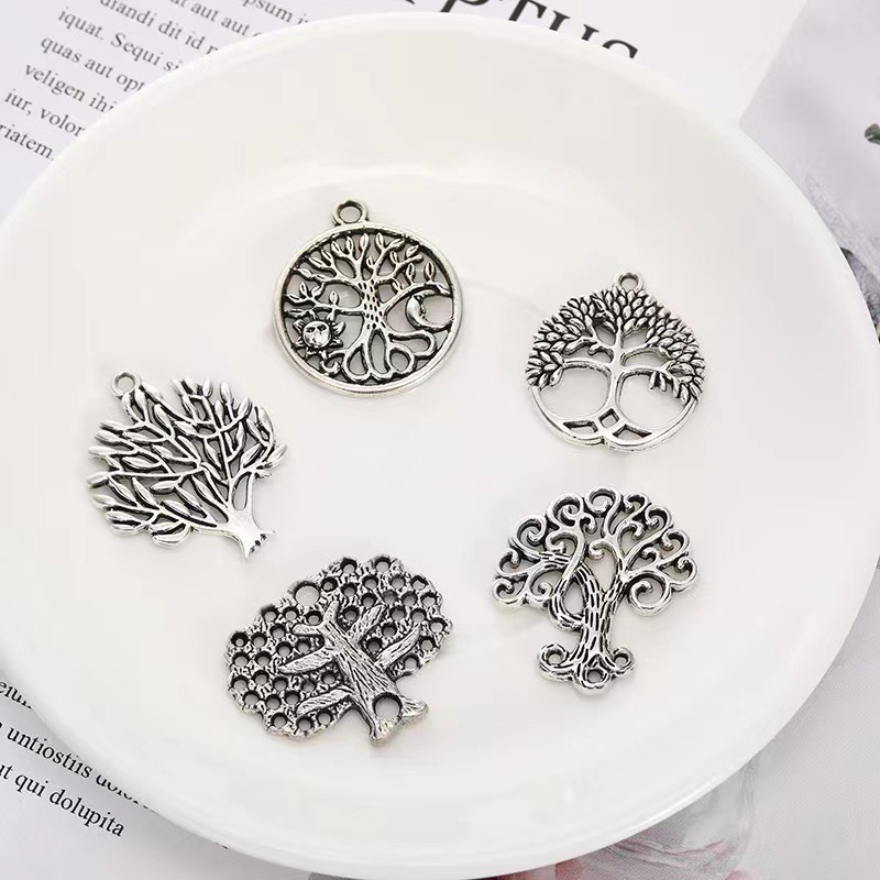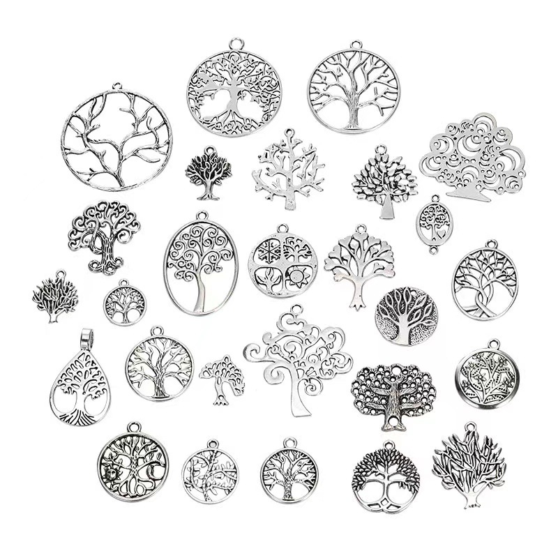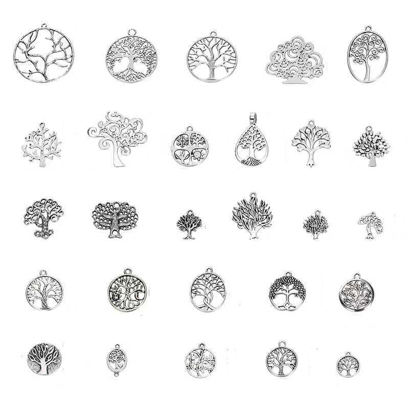 Ciondoli in lega di zinco, lega in zinco, Albero della vita, placcato argento antico, DIY, assenza di nichel,piombo&cadmio, 27PC/borsa, Venduto da borsa