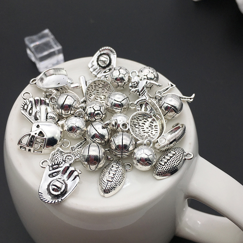 1:9196 Baseball 1.3g-15x18mm2:9197 baseball bat 1.7g-13x18mm3:9198 helmet 1.3g-14x20mm4:9199 athletes 1.5 grams-16x30mm5:9200 Rugby 1.3g-10x17mm6:8455 football 4.4 grams-11x14mm7:8457 basketball 4.4 grams-11x14mm8:8460 volleyball 4.1 grams-11x14mm9:4673 baseball glove 2.2g-15x21mm10:3591 football 3.4 grams-10x13mm