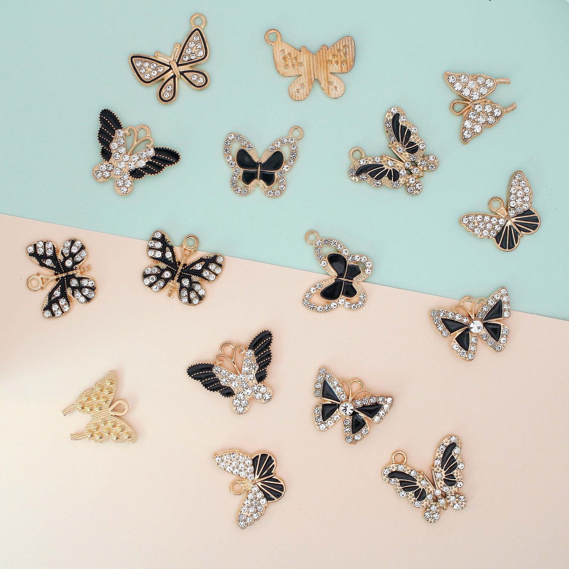 Ciondoli strass lega di zinco, lega in zinco, Farfalla, placcato, DIY & smalto & con strass, nessuno, 100PC/borsa, Venduto da borsa