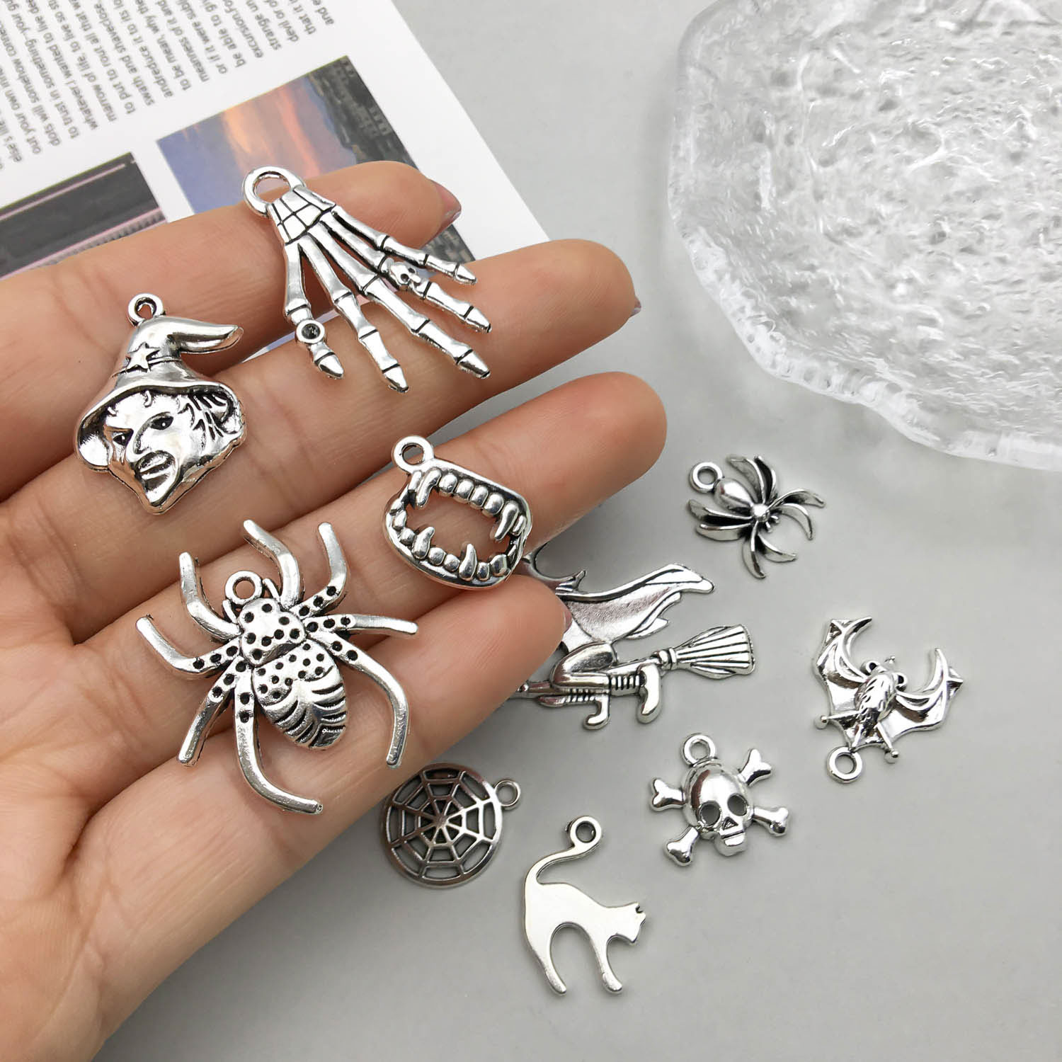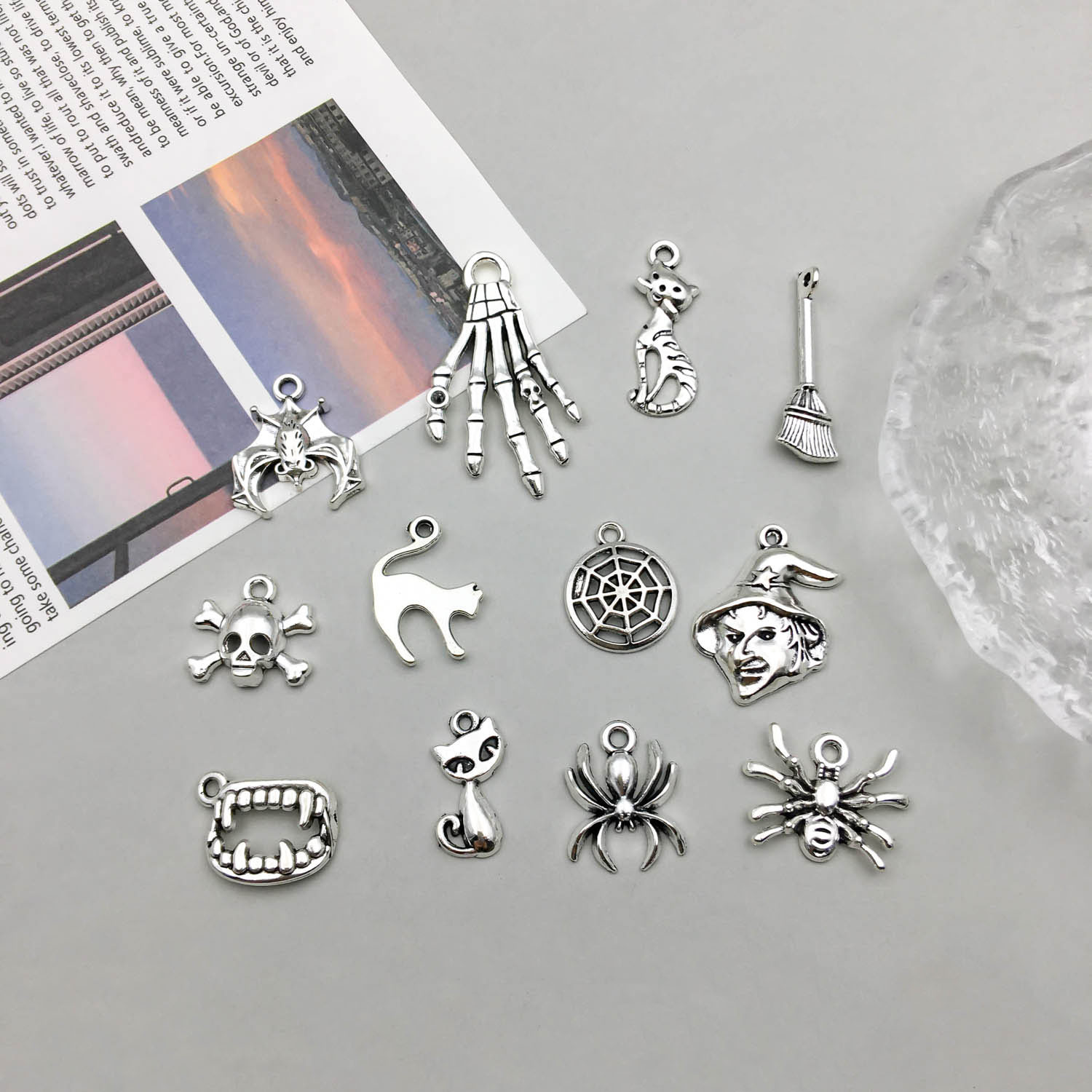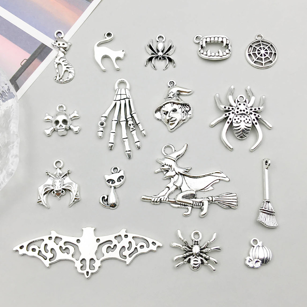 1:Mix 15 antique silver Halloween series-sn352:antique Silver Spider 15*18mm-0.8g-35823:antiquesilver skull hand 20*35mm-2.2g-36194:antique silver cat 9*25mm-0.8g-37745:antique silver teeth 14*17mm-1.1g-53216:antique Silver Spider 25*28mm-2.8g-53657:antique silver kitten 11*17mm-0.7g-61538:antique Silver Wizard 32*38mm-3.4g-76889:antique silver bat 19*56mm-3.4g-771610:antique silver pumpkin 10*11mm-0.7g-810411:antique silver cat 14*18mm-1g-851812:antique Silver Broom 10*31mm-1.2g-1087713:antique silver wizard hat 20*33mm-1.6g-1088514:antique silver skull 15*10mm-0.8g-1088815:antique Silver Spider Web 14*17mm-0.7g-1515916:antique Silver Spider 13*17mm-1g-B11017:antique silver bat 16*19mm-1.6g-B297