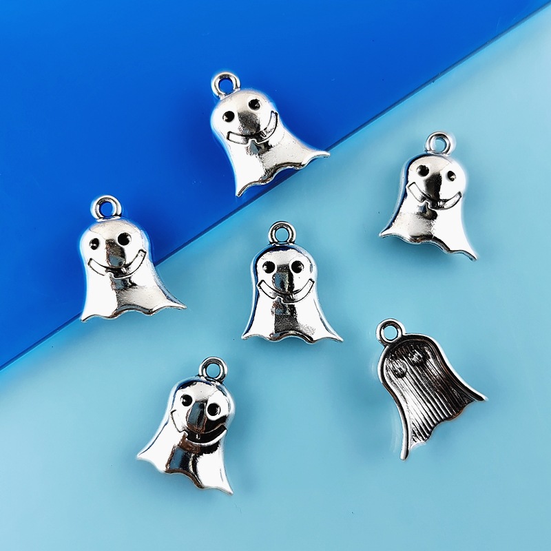 Ciondolo Halloween Moda, lega in zinco, fantasma, placcato argento antico, Design di Halloween & DIY, 17x14x4mm, Foro:Appross. 2mm, 50PC/borsa, Venduto da borsa