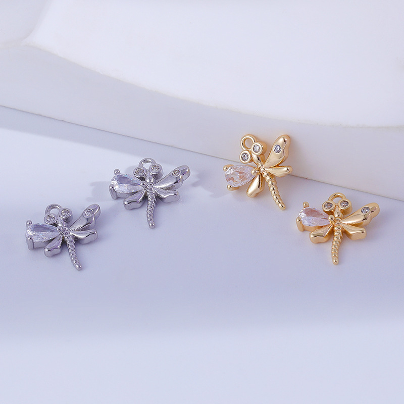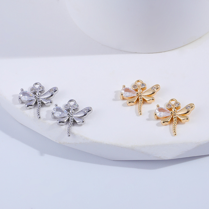 Affissi per orecchino in ottone , Libellula, placcato, DIY & Micro spianare cubic zirconia, nessuno, assenza di nichel,piombo&cadmio, 12x11.80mm, Venduto da PC