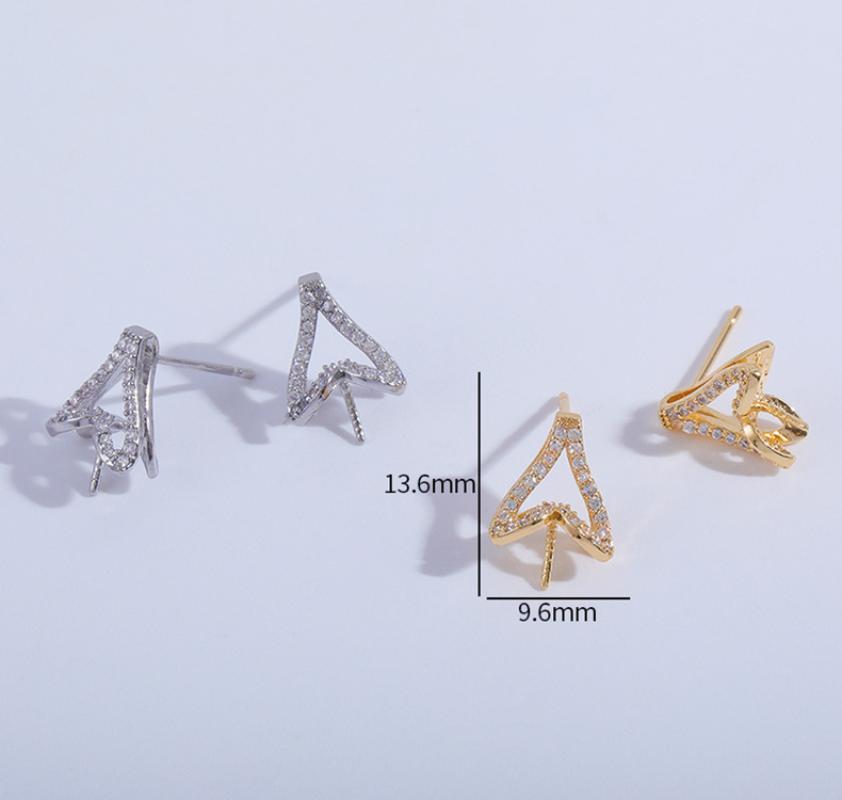 Affissi per orecchino in ottone , placcato, DIY & Micro spianare cubic zirconia, nessuno, assenza di nichel,piombo&cadmio, 9.60x13.60mm, 10PC/borsa, Venduto da borsa