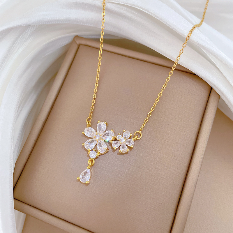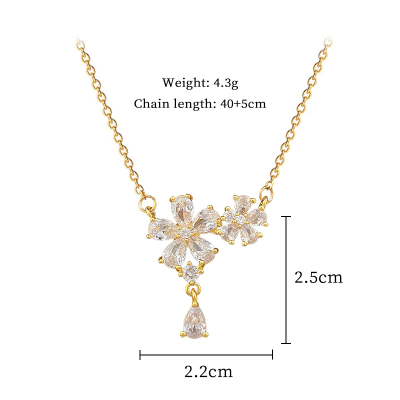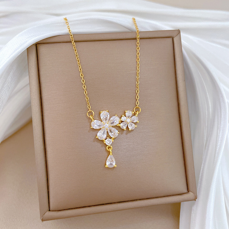 Collana di titanio acciaio, Titantium acciaio, with ottone, Fiore, gioielli di moda & Micro spianare cubic zirconia & per la donna, dorato, Venduto da PC