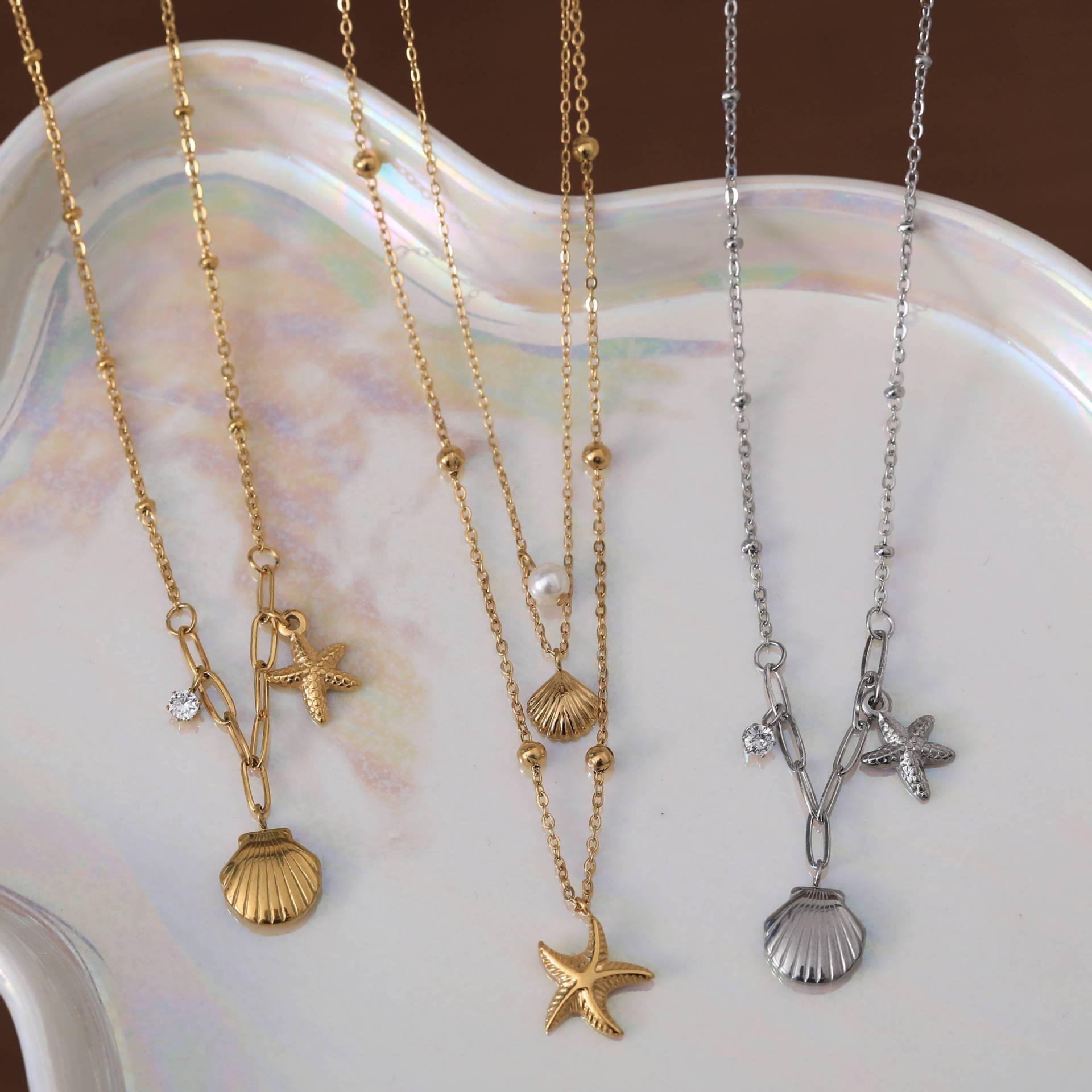 Collana in acciaio inossidabile, 304 acciaio inox, with conchiglia, Micro spianare cubic zirconia & per la donna, Lunghezza 41-50 cm, Venduto da PC