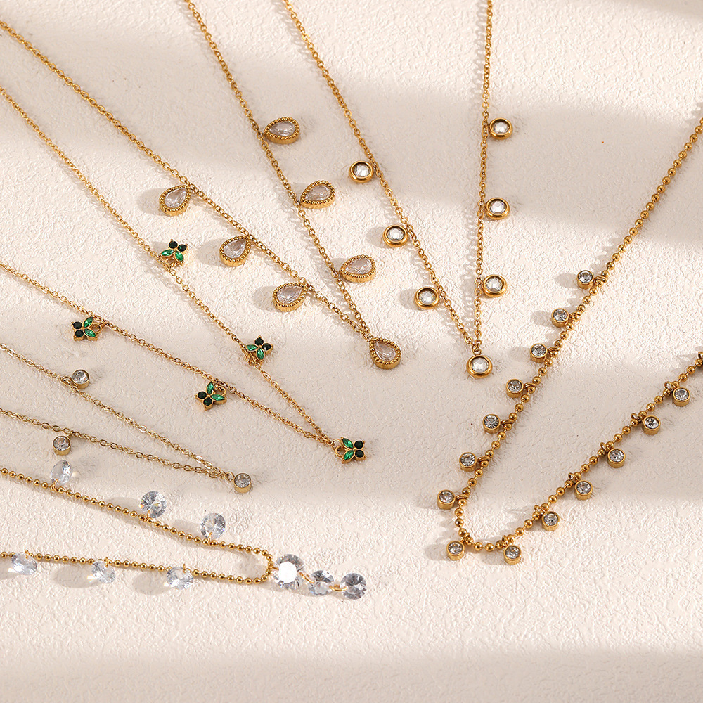 Collana in acciaio inossidabile, 304 acciaio inox, placcato, gioielli di moda & Micro spianare cubic zirconia & con strass, nessuno, Venduto da PC