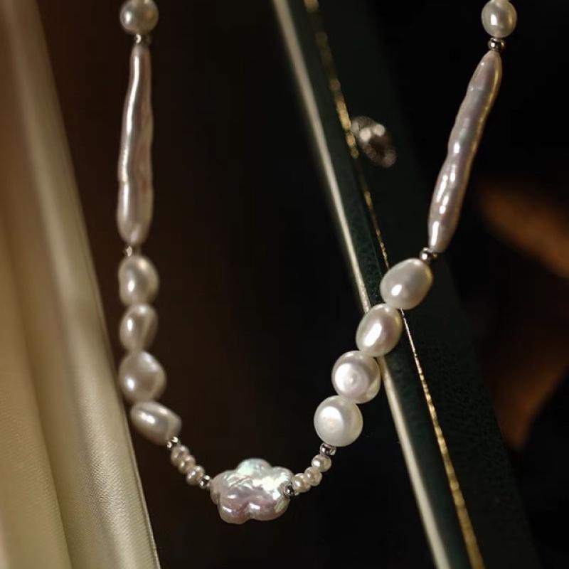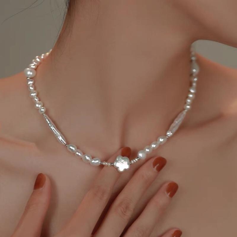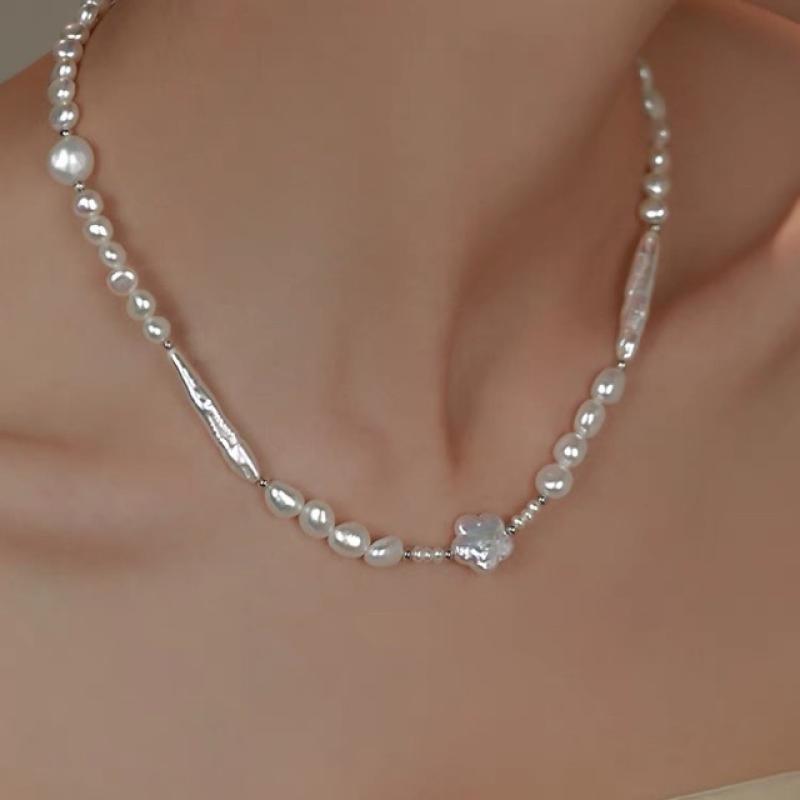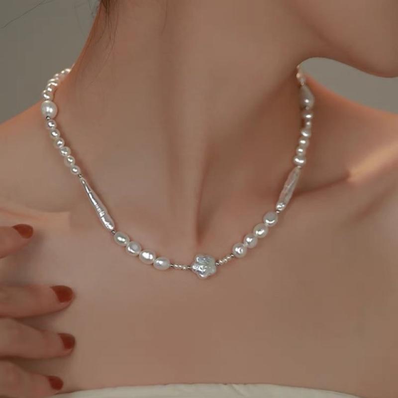 Collane a perle naturali d'acquadolce , perla d'acquadolce coltivata naturalmente, with 925 sterline d'argento, Barocco, gioielli di moda, nessuno, 6x7mm, Venduto da filo
