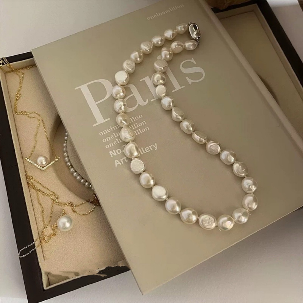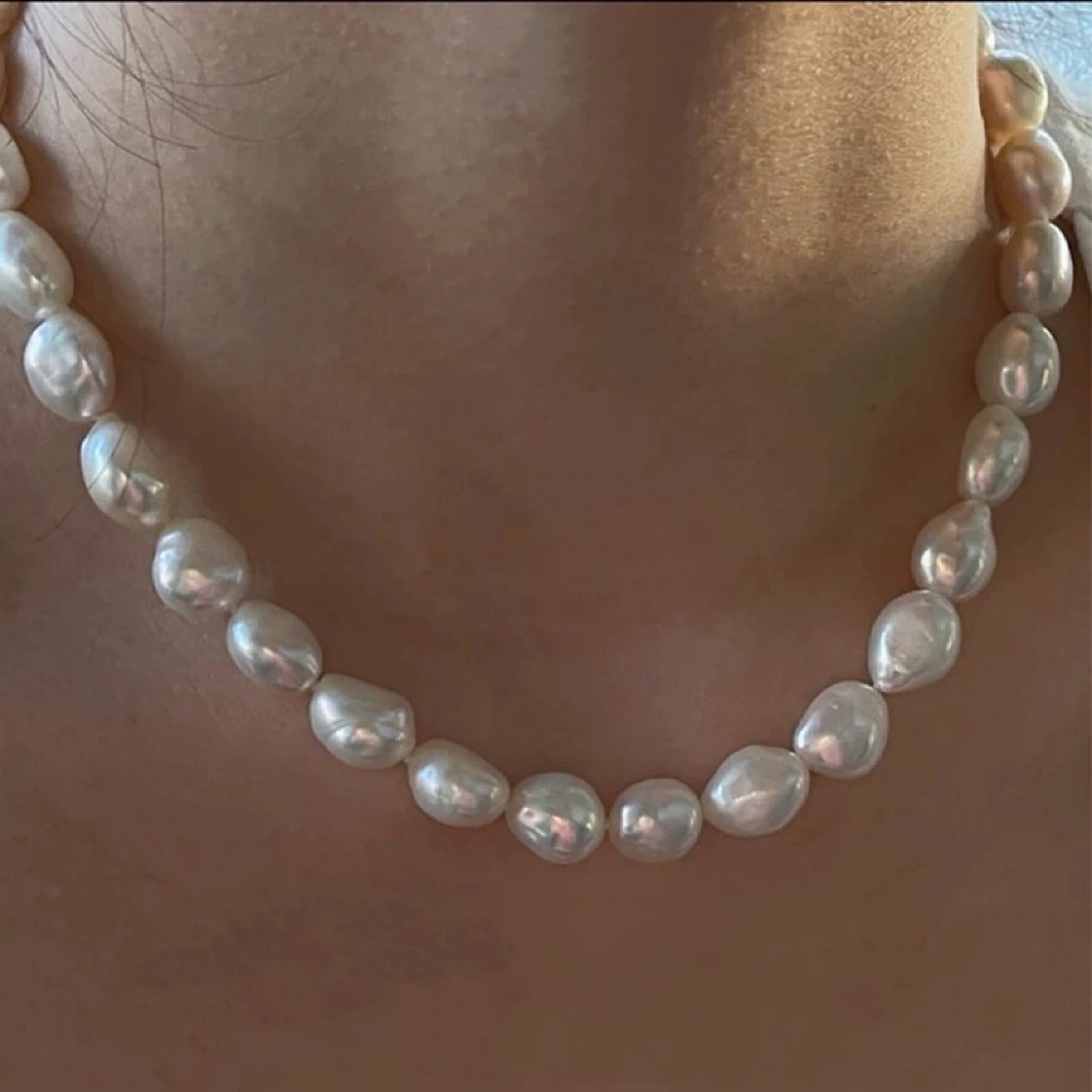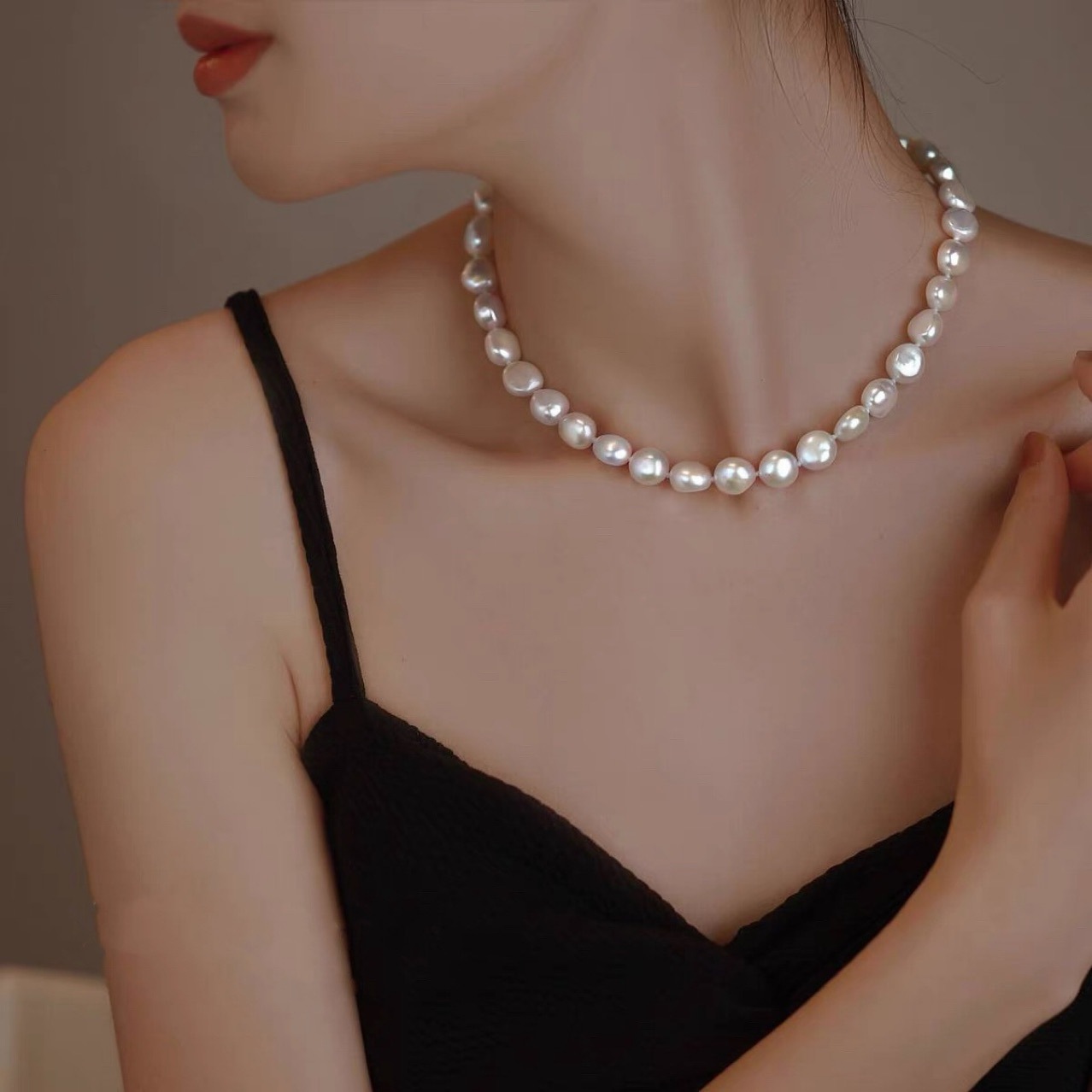Collane a perle naturali d'acquadolce , perla d'acquadolce coltivata naturalmente, with 925 sterline d'argento, placcato color oro, gioielli di moda, bianco, 7x9mm, Venduto da filo