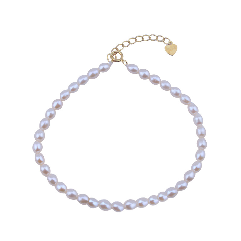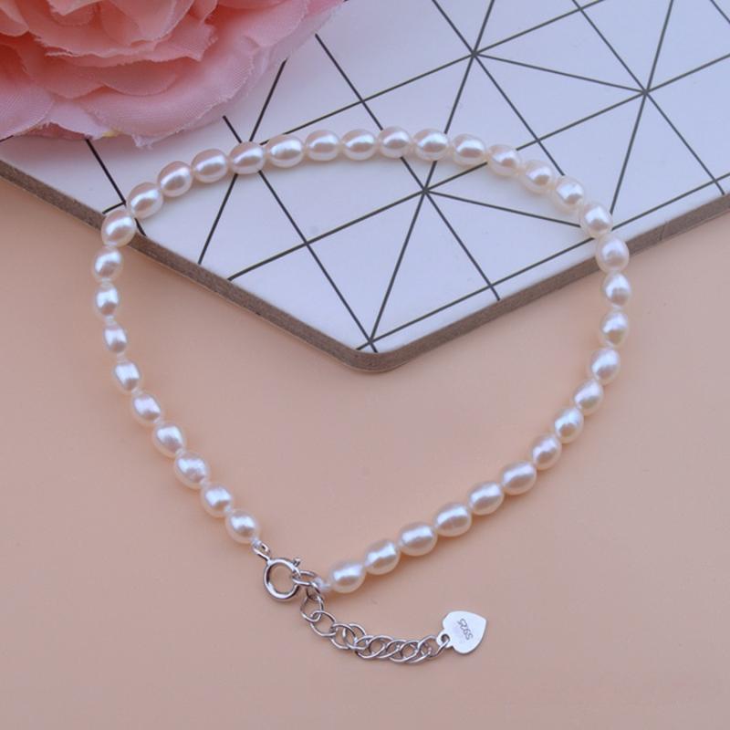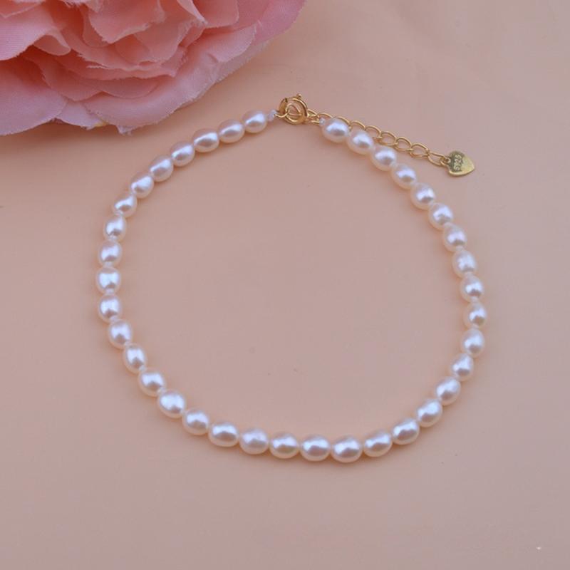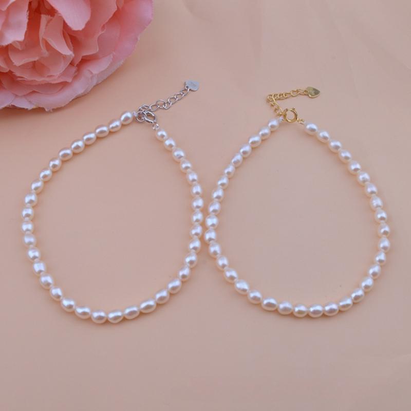 Collane a perle naturali d'acquadolce , perla d'acquadolce coltivata naturalmente, with 925 sterline d'argento, Riso, placcato color oro, gioielli di moda, bianco, 3x4mm, Venduto da filo