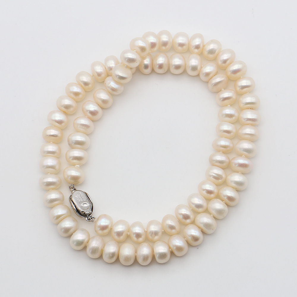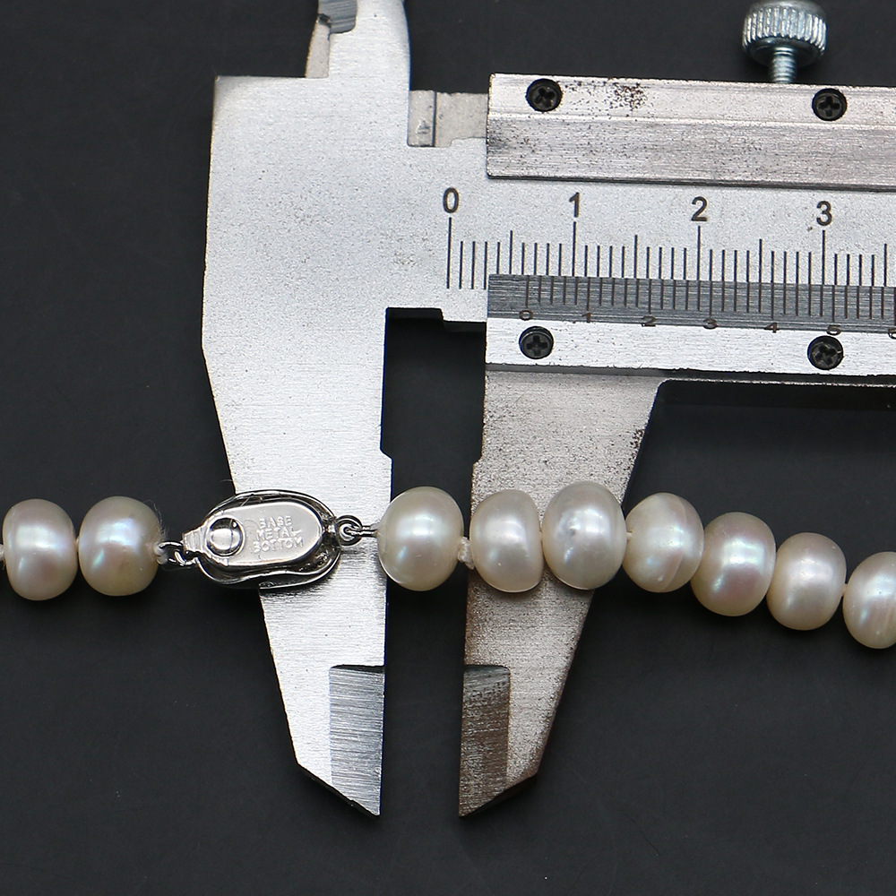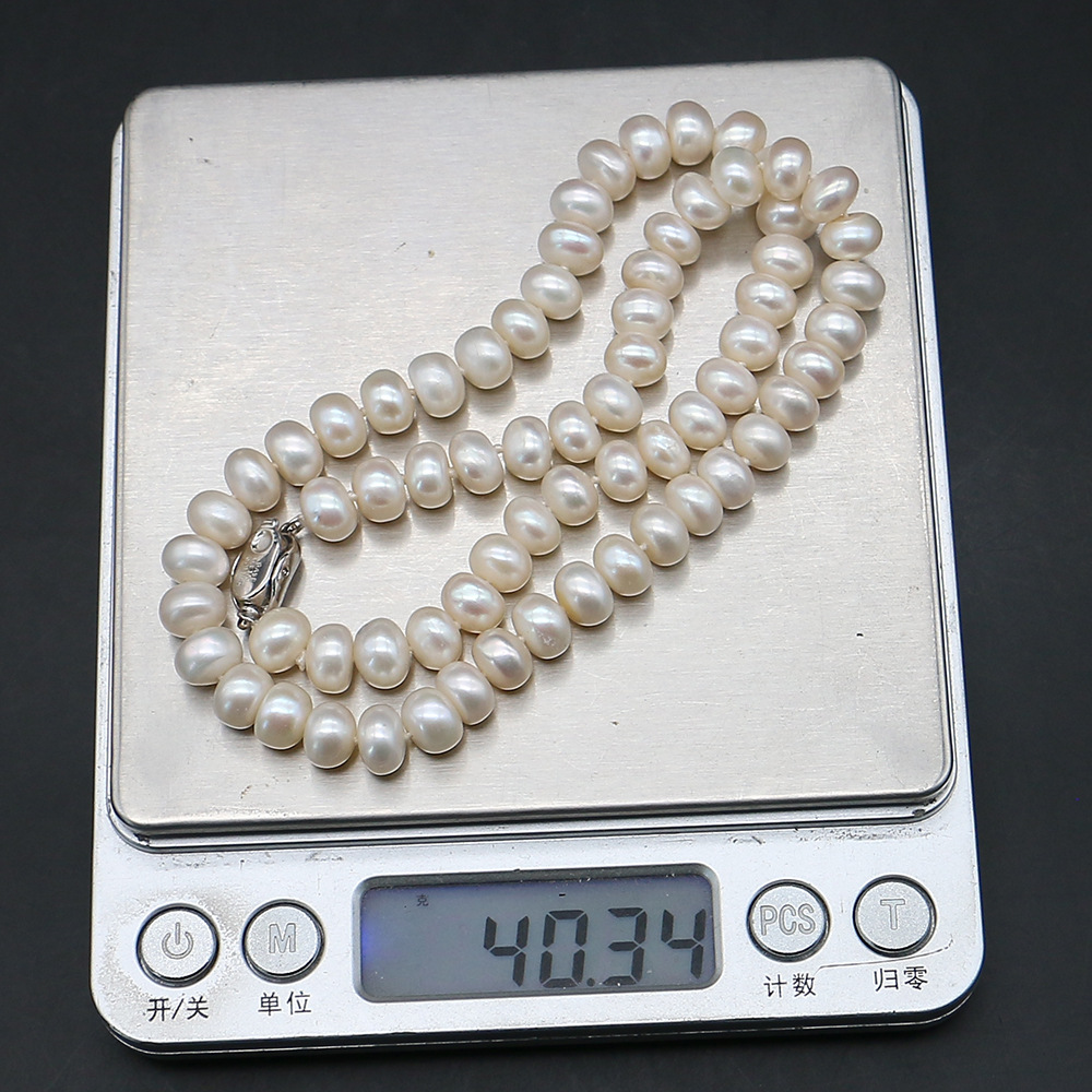 Collane a perle naturali d'acquadolce , perla d'acquadolce coltivata naturalmente, with 304 acciaio inox, Cerchio piatto, placcato, gioielli di moda, bianco, 7-8mm, Lunghezza 42 cm, Venduto da PC