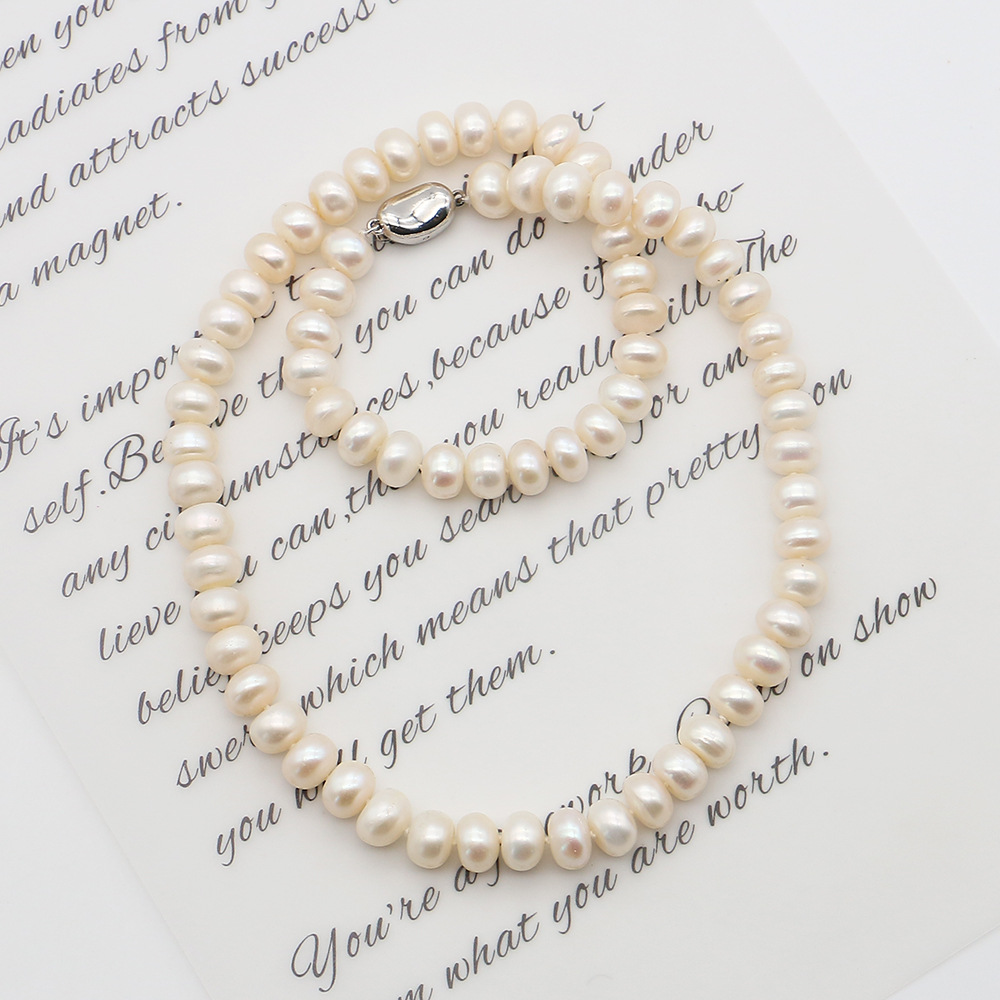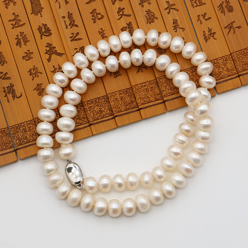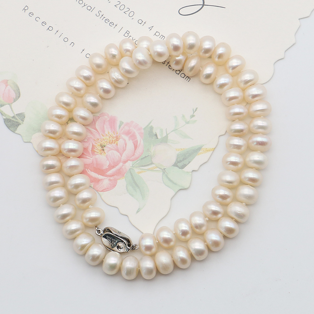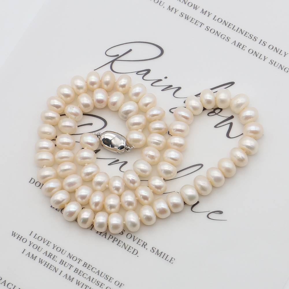 Collane a perle naturali d'acquadolce , perla d'acquadolce coltivata naturalmente, with 304 acciaio inox, Cerchio piatto, placcato, gioielli di moda, bianco, 7-8mm, Lunghezza 42 cm, Venduto da PC