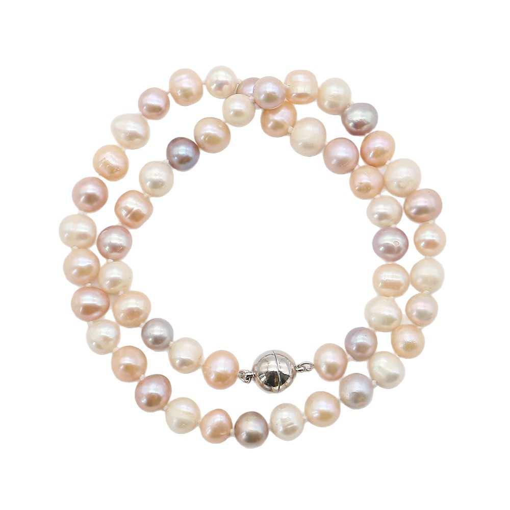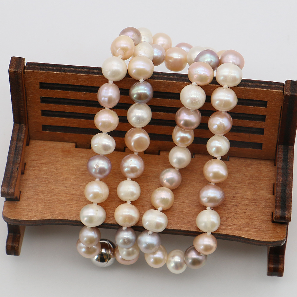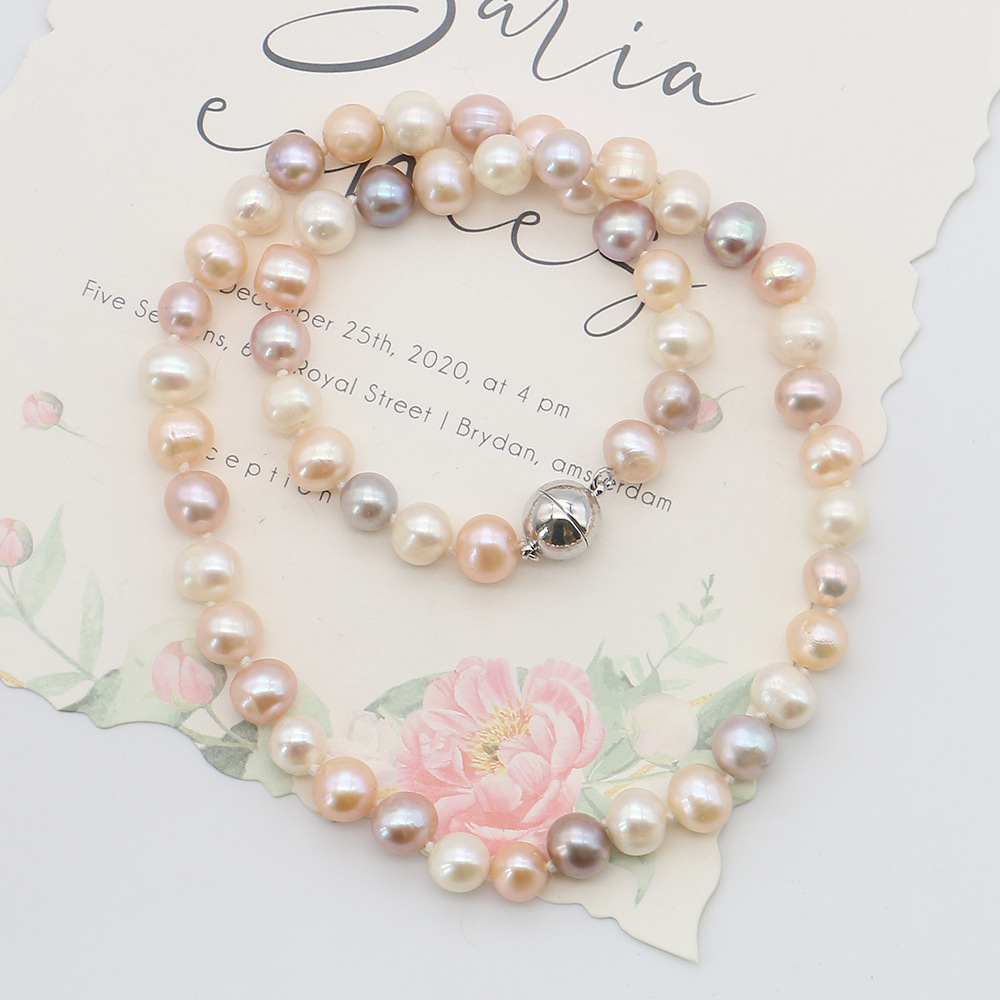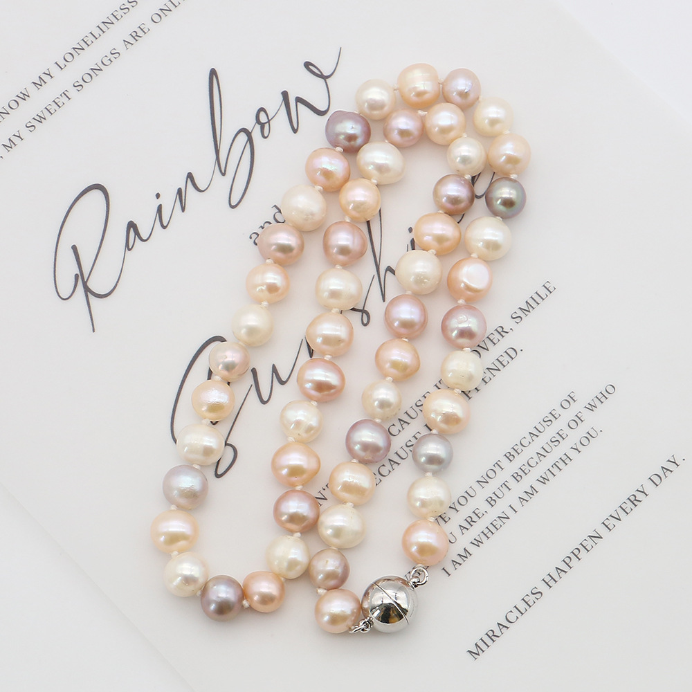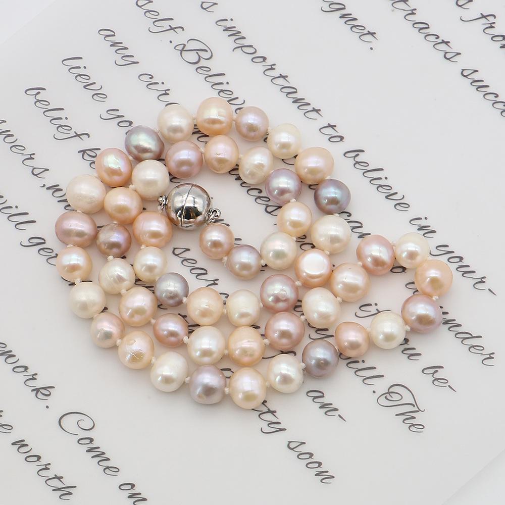 Collane a perle naturali d'acquadolce , perla d'acquadolce coltivata naturalmente, with 304 acciaio inox, Cerchio, gioielli di moda, colori misti, 7-8mm, Venduto per 44 cm filo