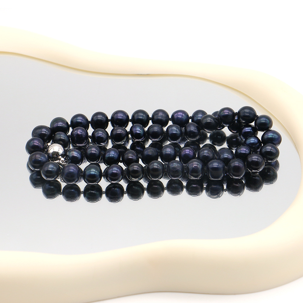Collane a perle naturali d'acquadolce , perla d'acquadolce coltivata naturalmente, with 304 acciaio inox, Cerchio, gioielli di moda, colori misti, 7-8mm, Venduto per 41 cm filo