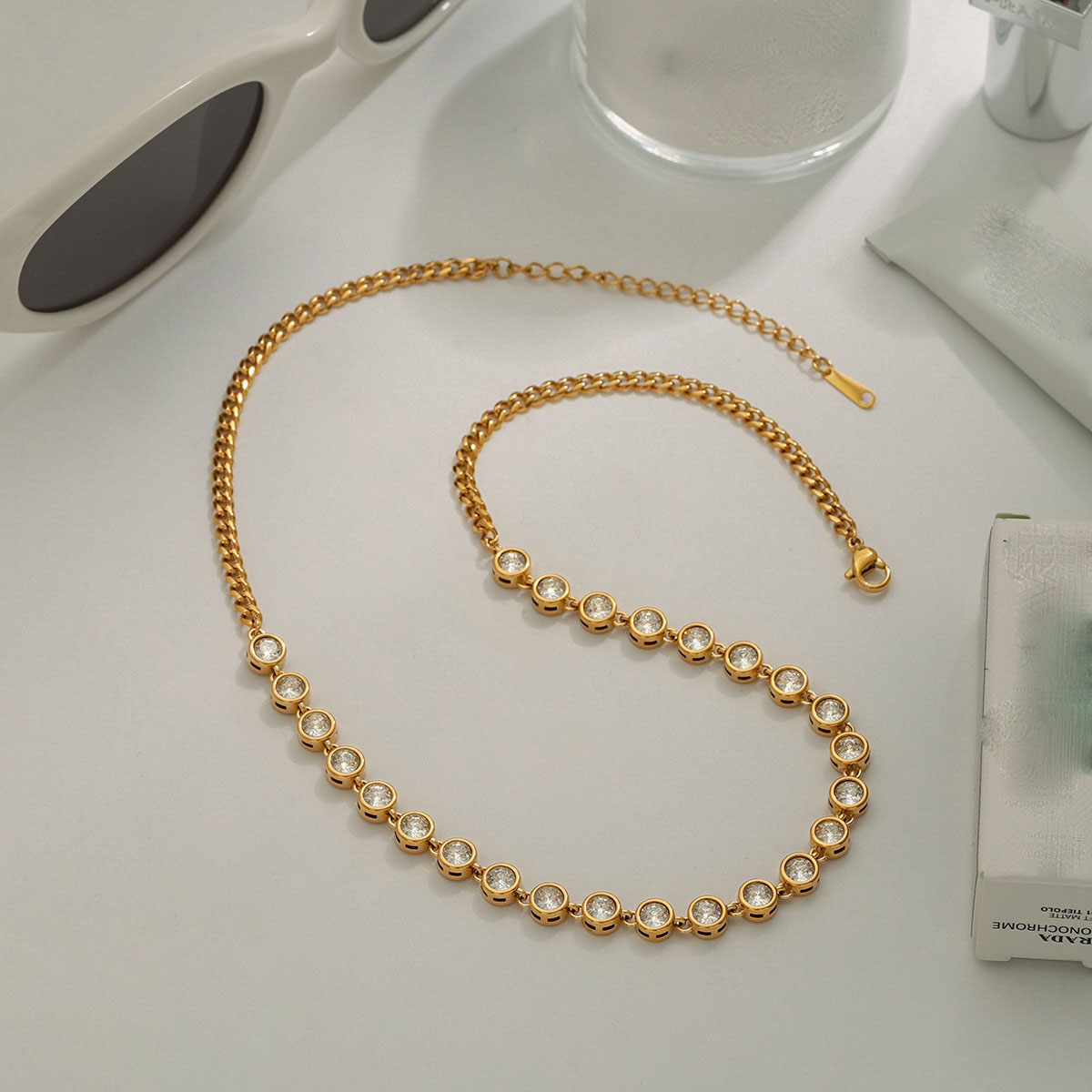 Collana in acciaio inossidabile, 304 acciaio inox, with cubico zircone, with 1.96 Inch extender chain, Placcato oro 18K, gioielli di moda & per la donna, Lunghezza 15.74 pollice, Venduto da PC