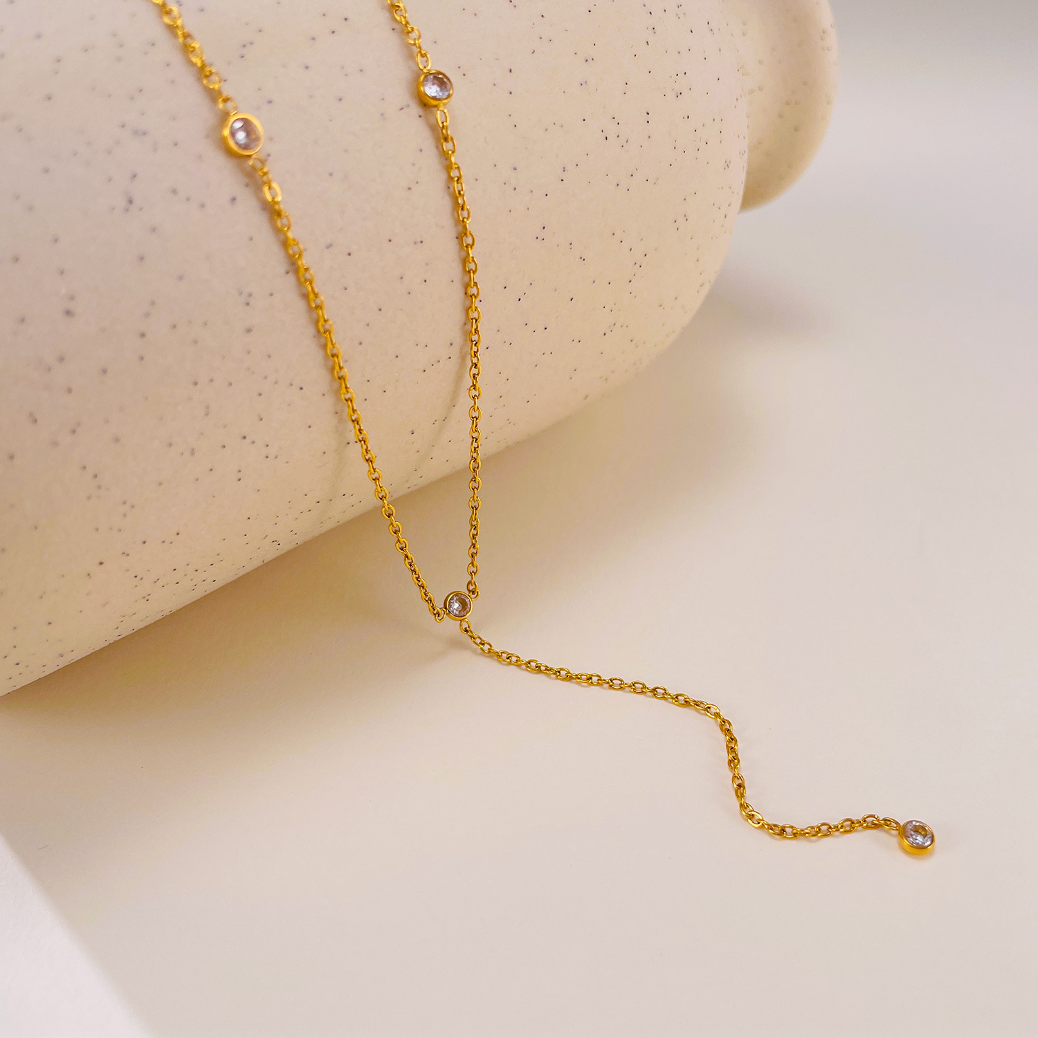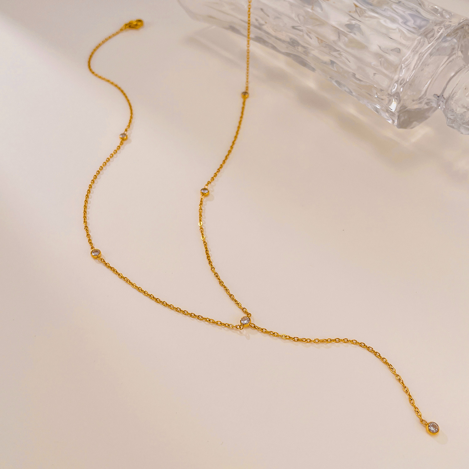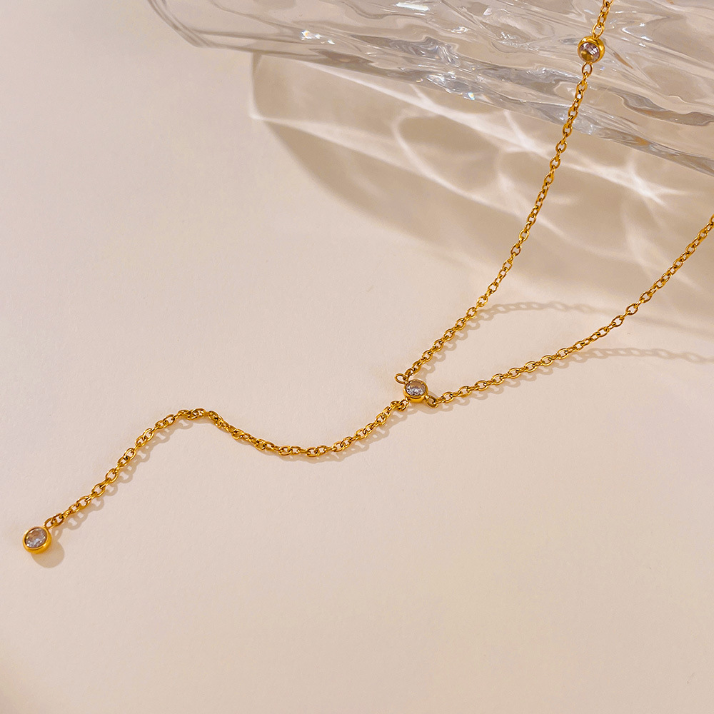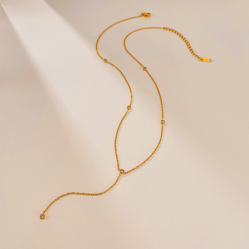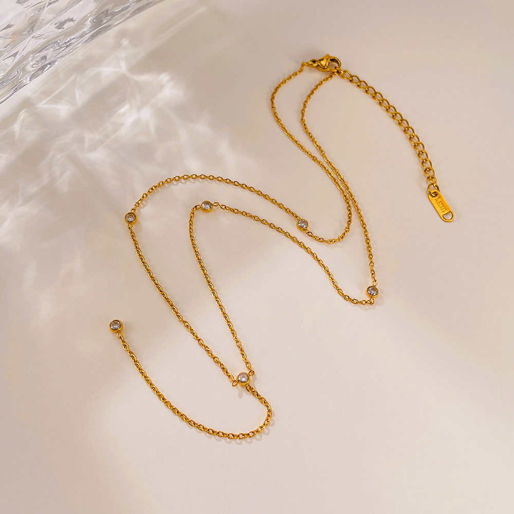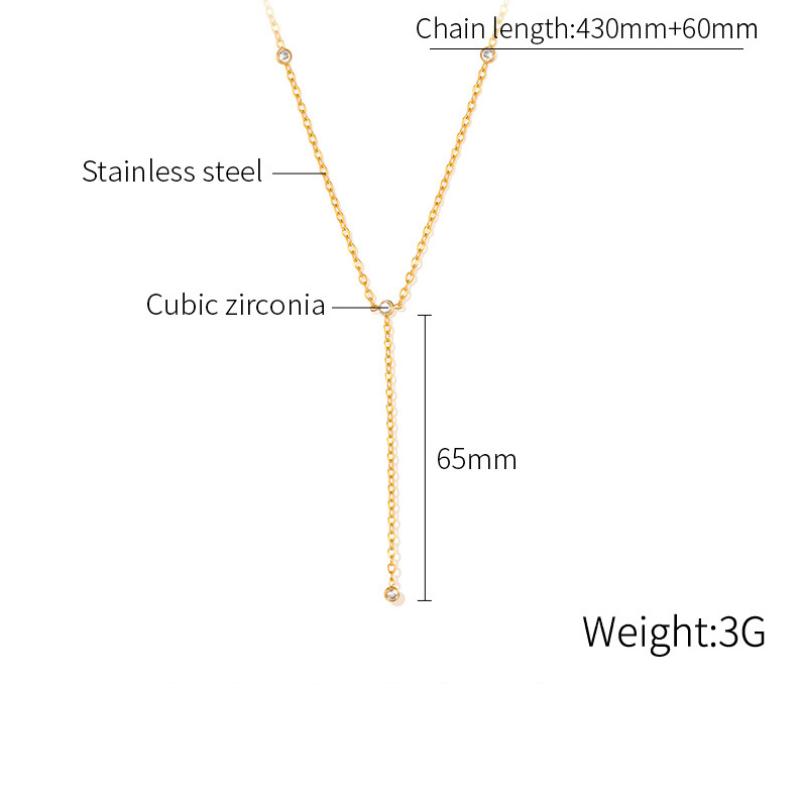 Collana in acciaio inossidabile, 304 acciaio inox, with cubico zircone, with 60mm extender chain, placcato color oro, gioielli di moda & per la donna, Lunghezza 430 mm, Venduto da PC