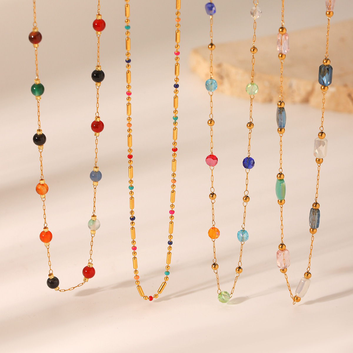 Collana in acciaio inossidabile, 304 acciaio inox, with vetro lavorato, placcato, gioielli di moda, colori misti, Venduto da PC