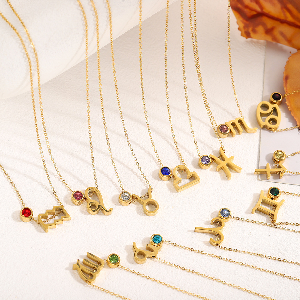 Collana in acciaio inossidabile, 304 acciaio inox, 12 Segni zodiacali, placcato color oro, con strass, nessuno, Venduto da PC
