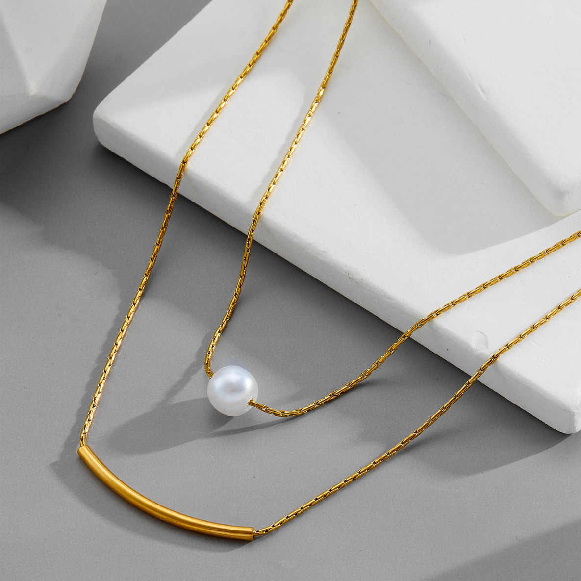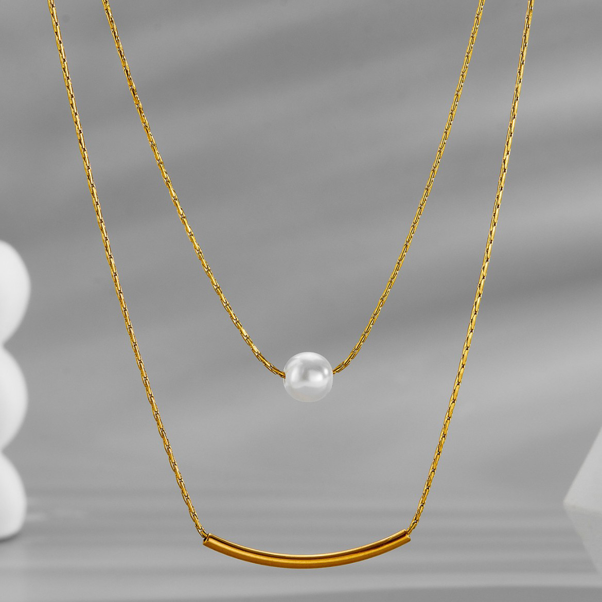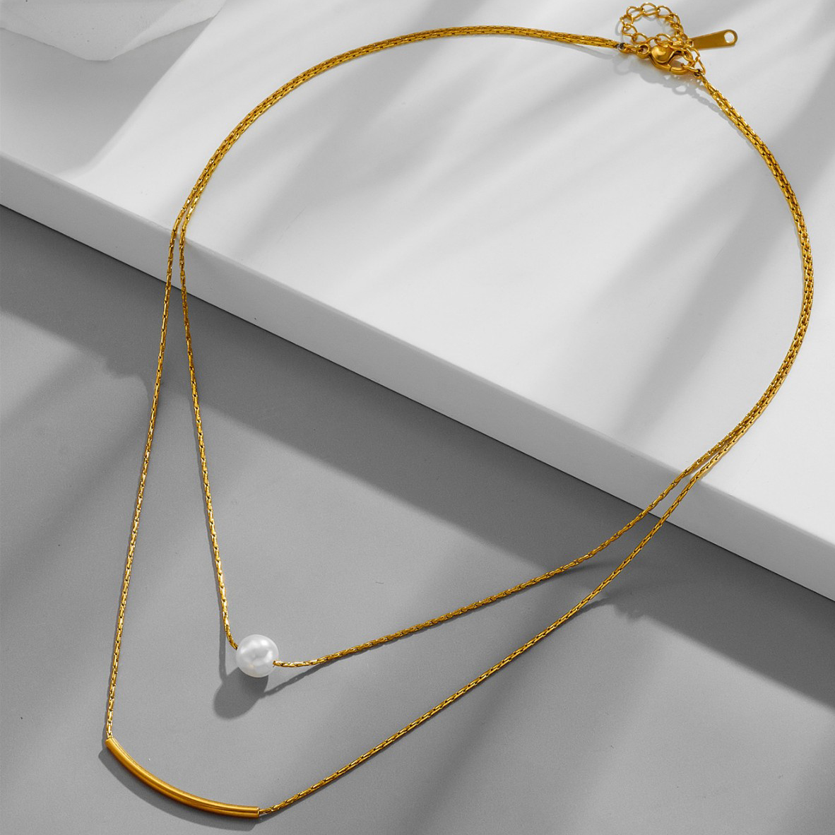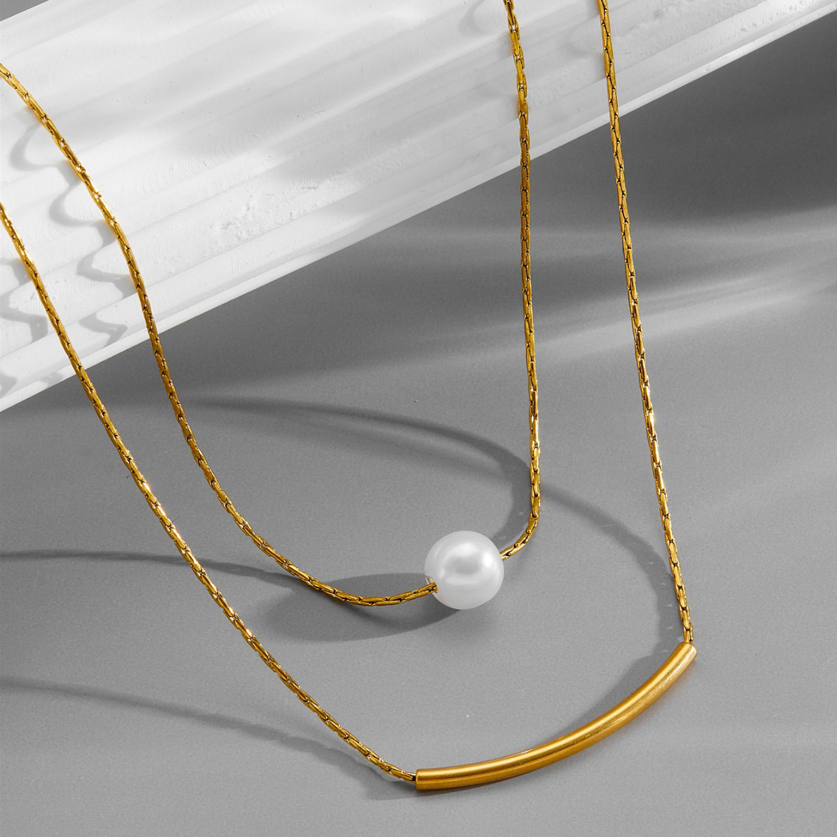 Collana in acciaio inossidabile, 304 acciaio inox, with Shell Pearl, Placcato oro 18K, Doppio strato & gioielli di moda & per la donna, Lunghezza Appross. 45 cm, Venduto da PC